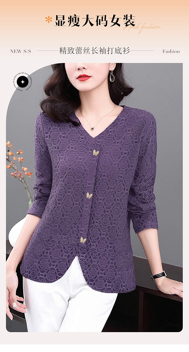 秋季长袖打底衫女士上衣秋装2026年新款大码女装时尚洋气蕾丝小衫