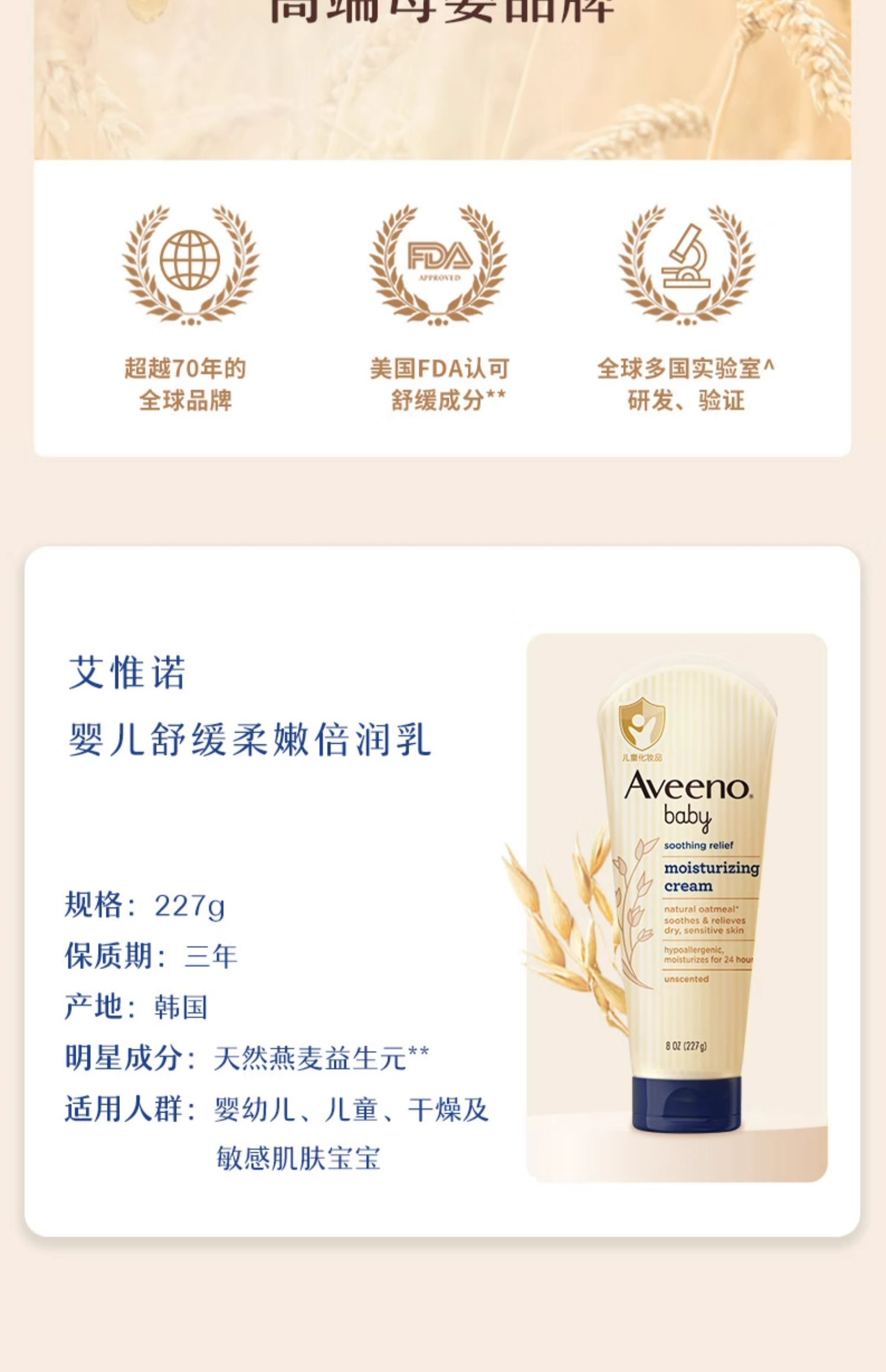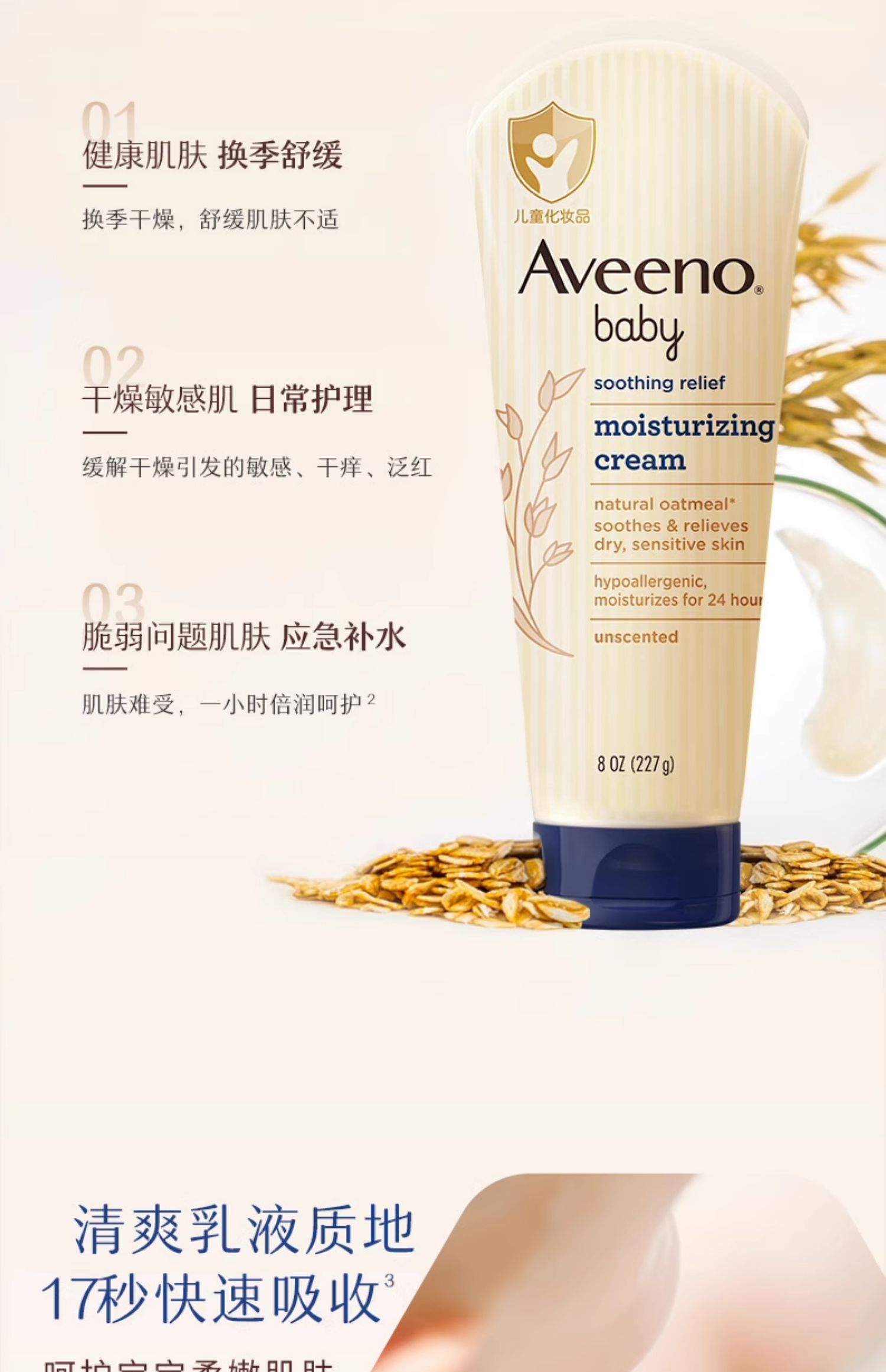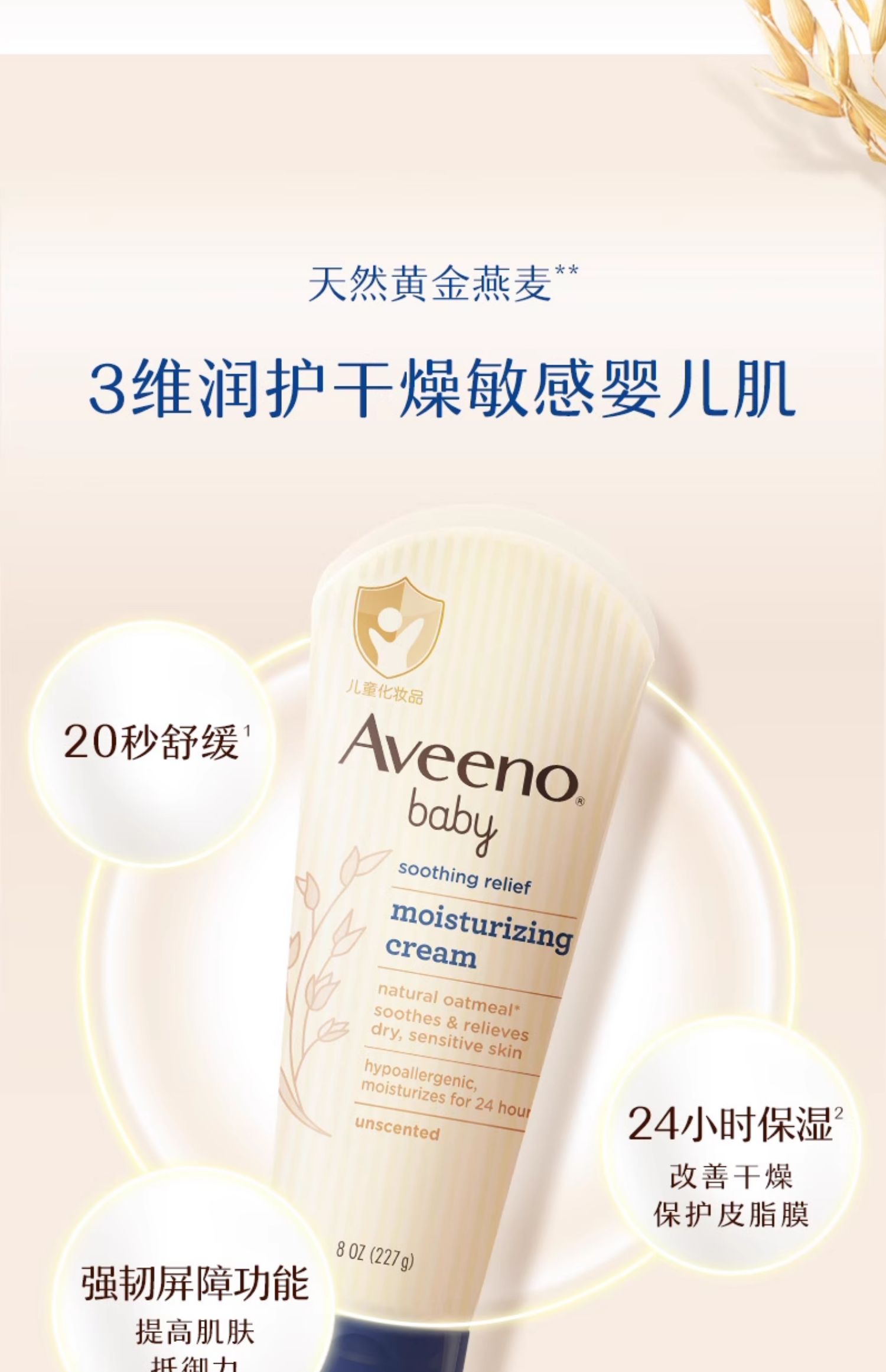 Aveeno艾惟诺/艾维诺婴儿面霜宝宝燕麦润肤乳227深蓝国行版