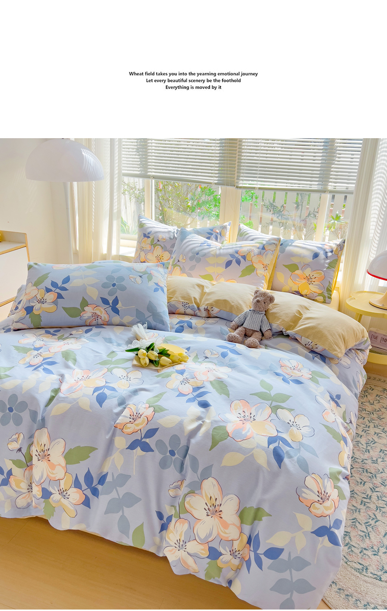 利路米家纺春季新款全棉印花四件套 桂花茶香