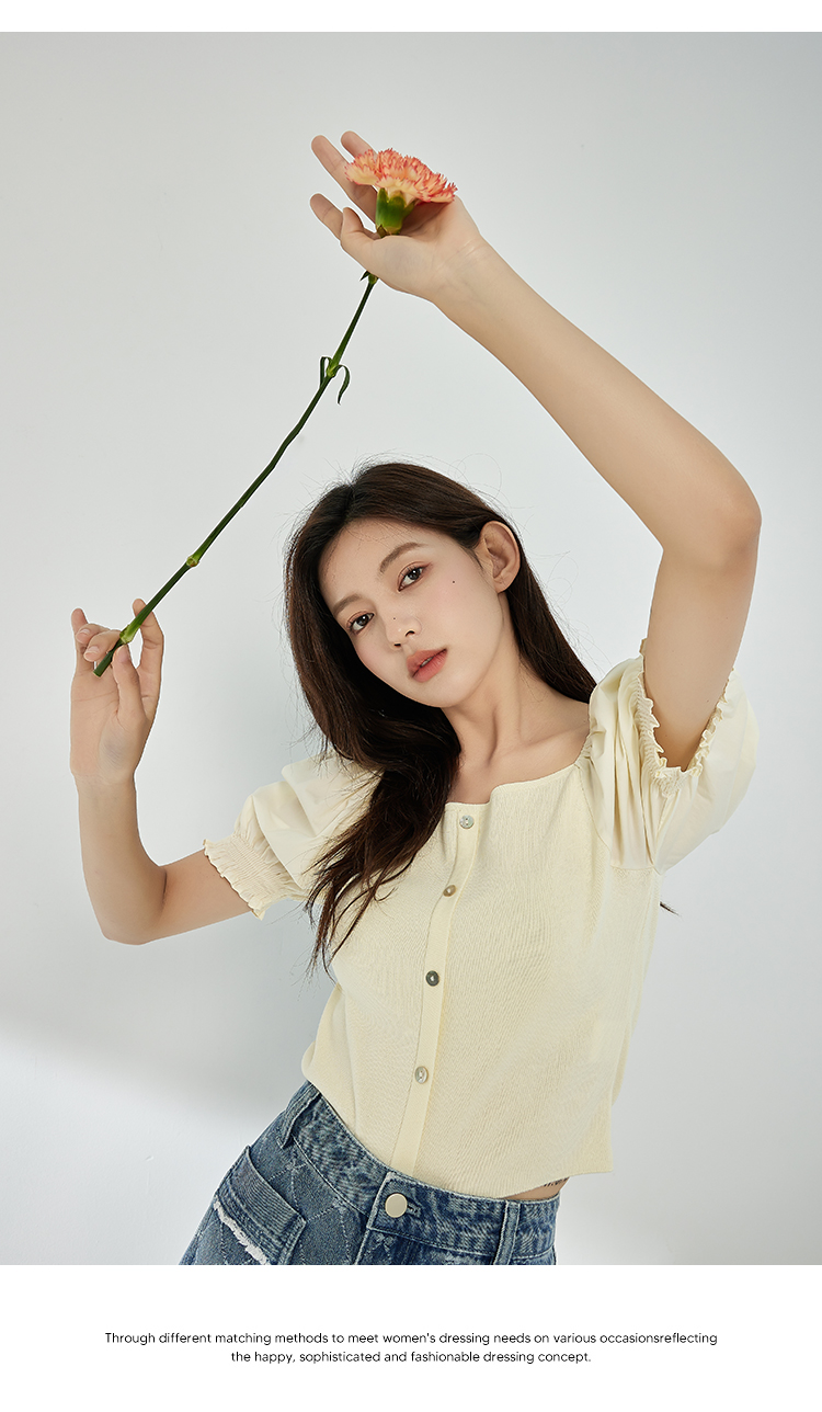 oldcolour秋季新款通勤时尚纯色花边袖长袖衬衫女P310107A1