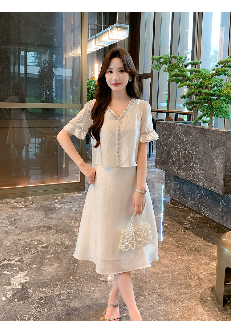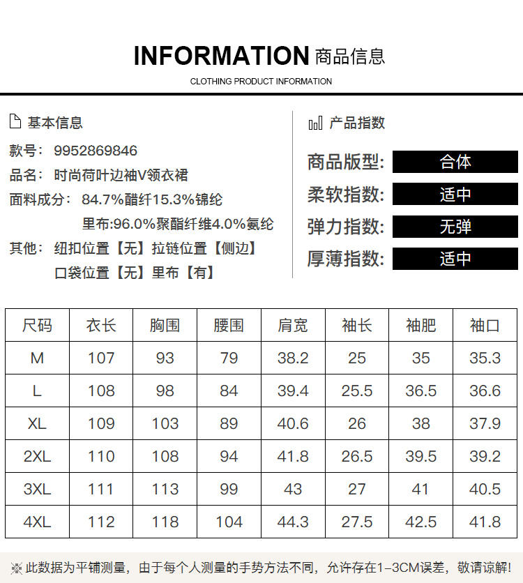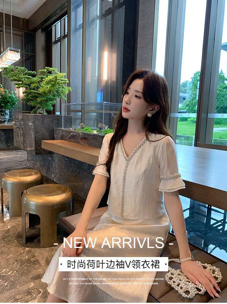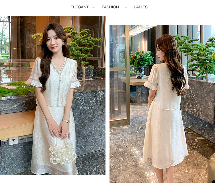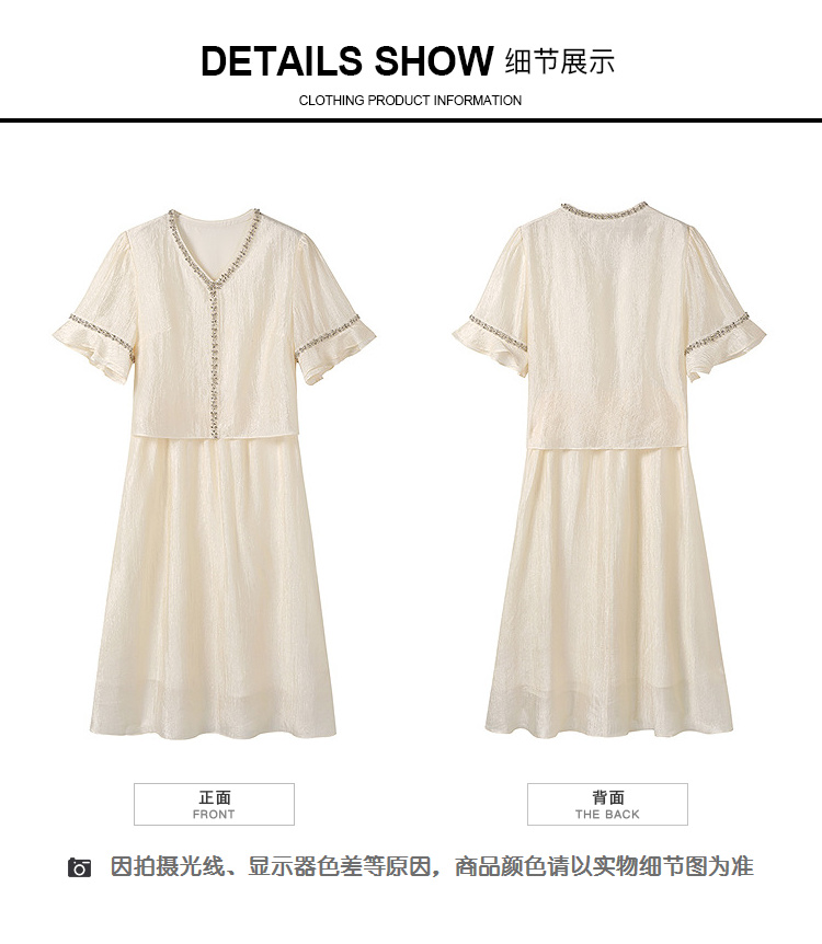 奢姿大码女装2026夏季减龄荷叶袖V领连衣裙胖妹妹假两件拼接裙子9952869846