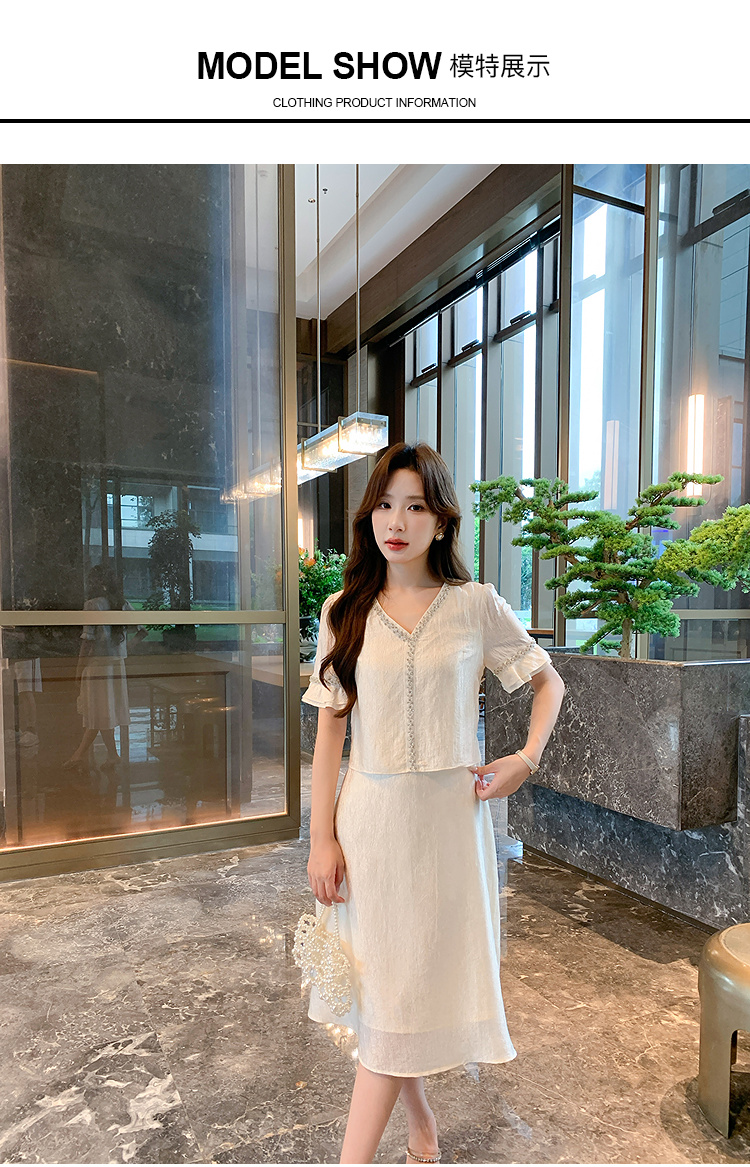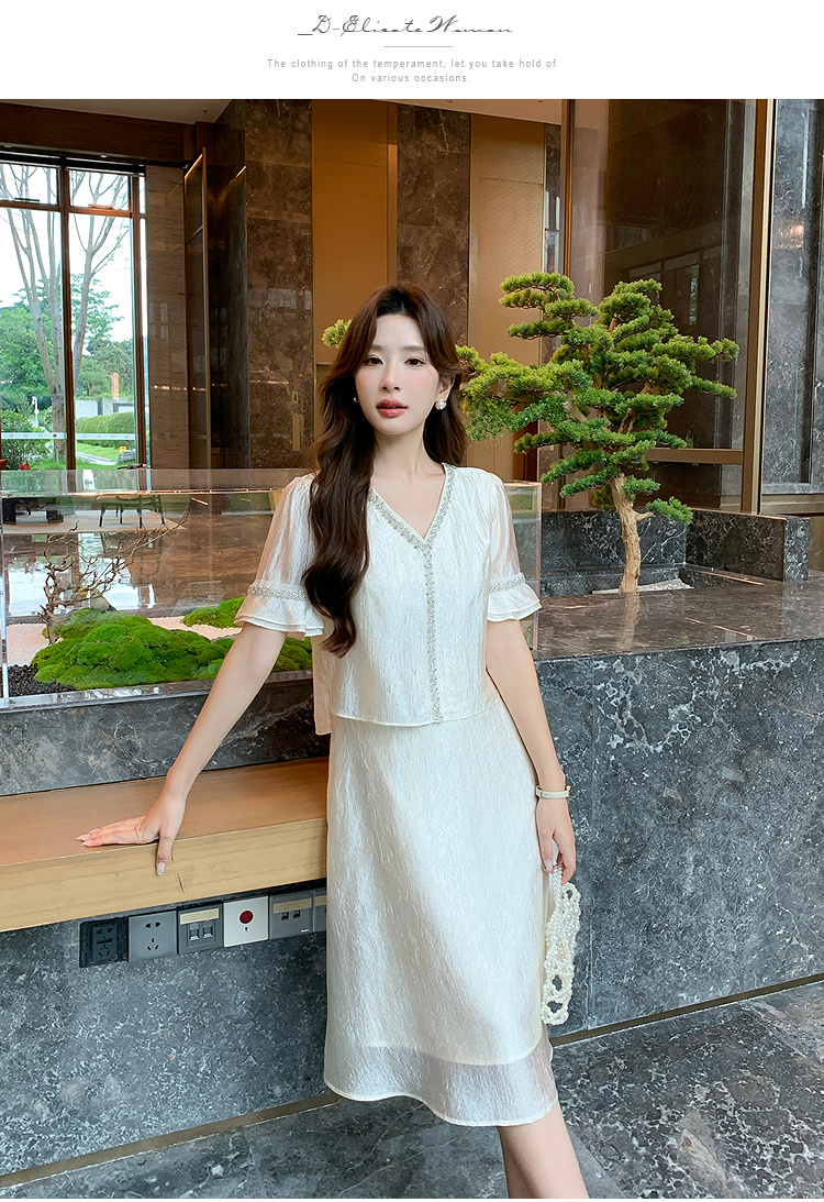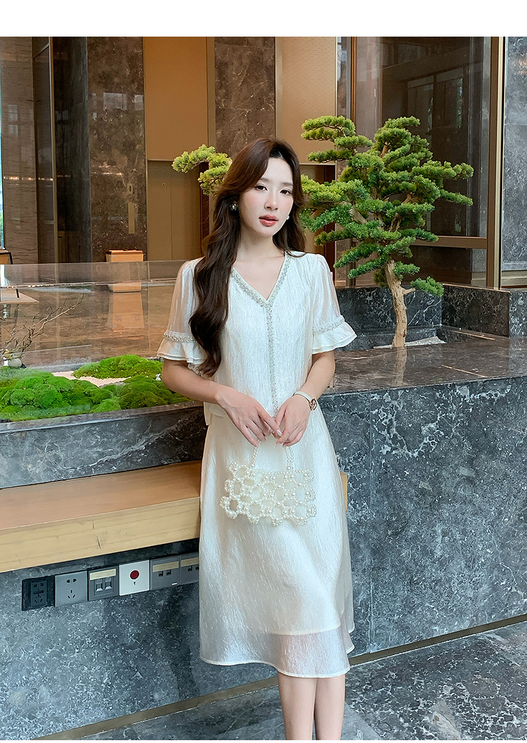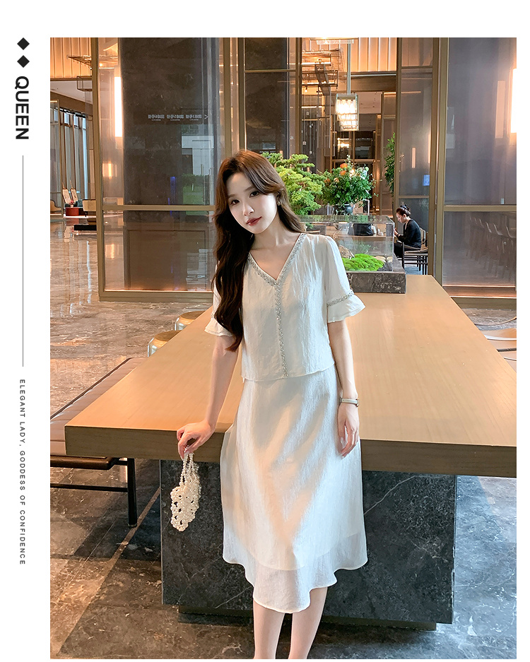 奢姿大码女装2026夏季减龄荷叶袖V领连衣裙胖妹妹假两件拼接裙子9952869846