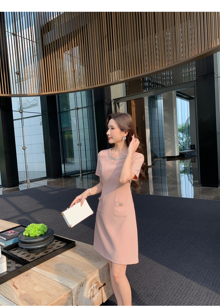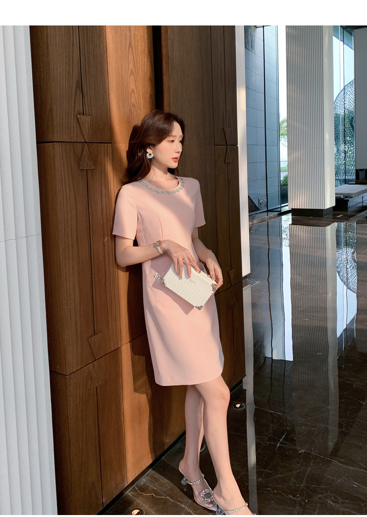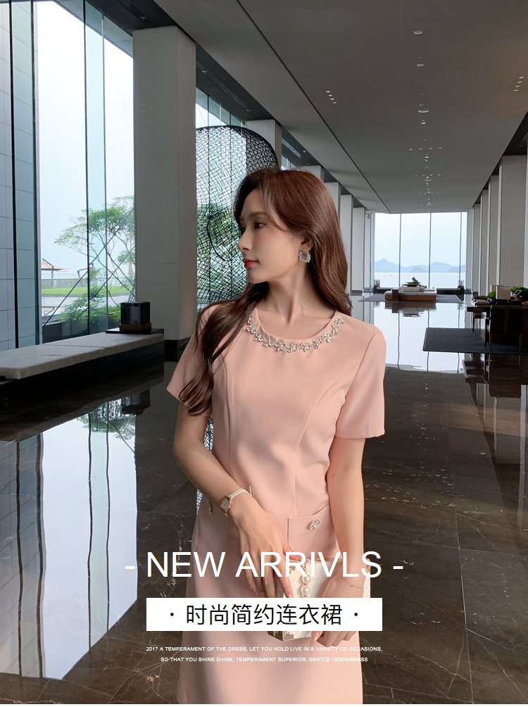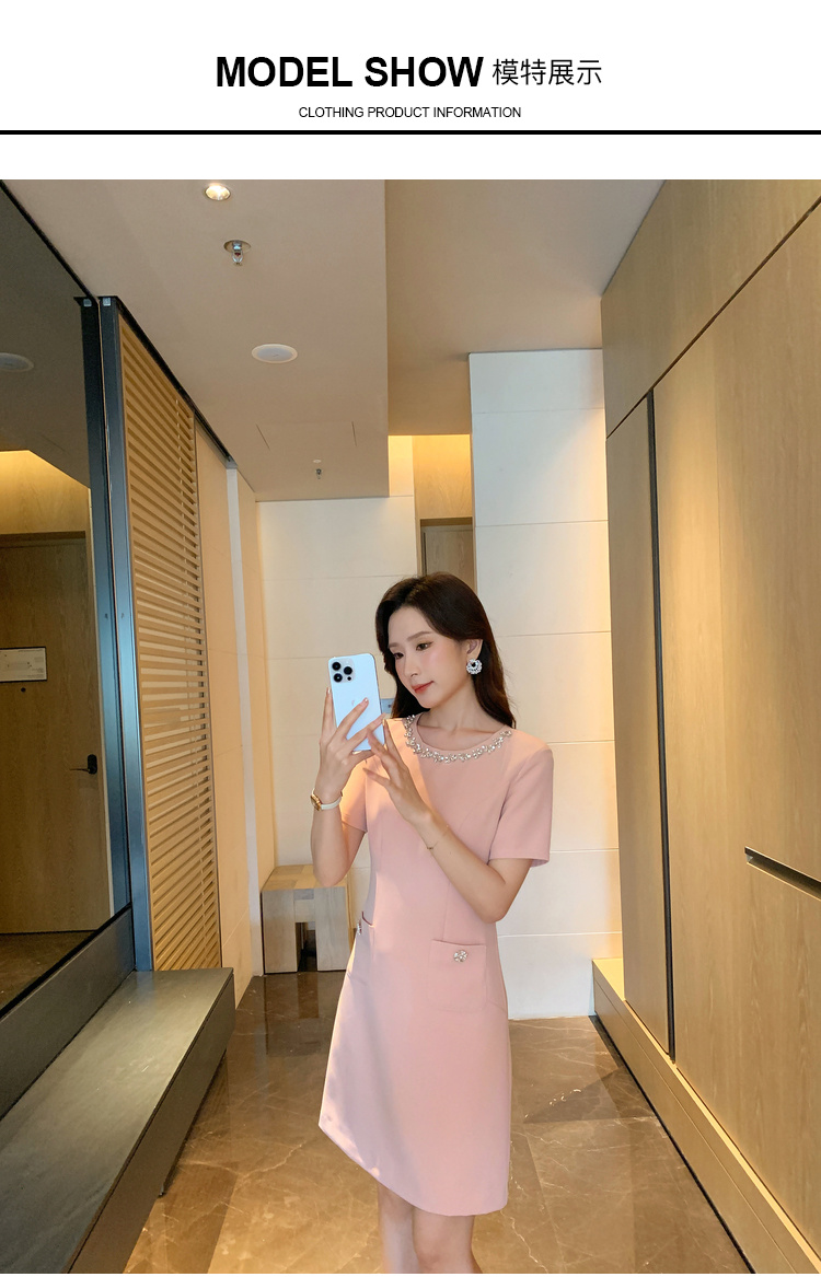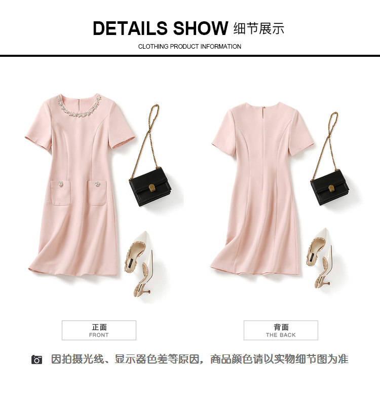 [奢姿轻奢系列]大码女装2026夏季钉珠装饰裙子胖妹妹时尚连衣裙8942860056