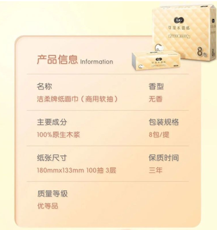 【RQ】洁柔JR306商用抽取式面巾纸三层100抽抽纸8包*3提 180mm*133mm 24包