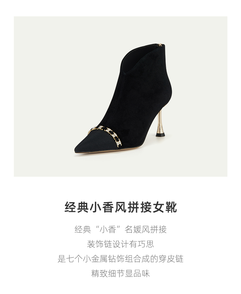 westory2023秋季新品经典小香风拼接女靴精致小巧时尚靴W23DS83291