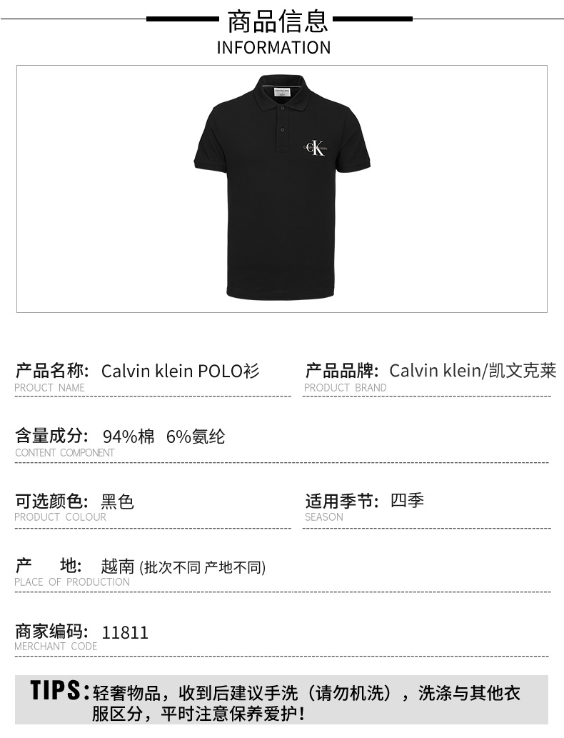 Clavin Klein 卡文·克莱 男士百搭弹棉休闲Polo短袖T恤11811