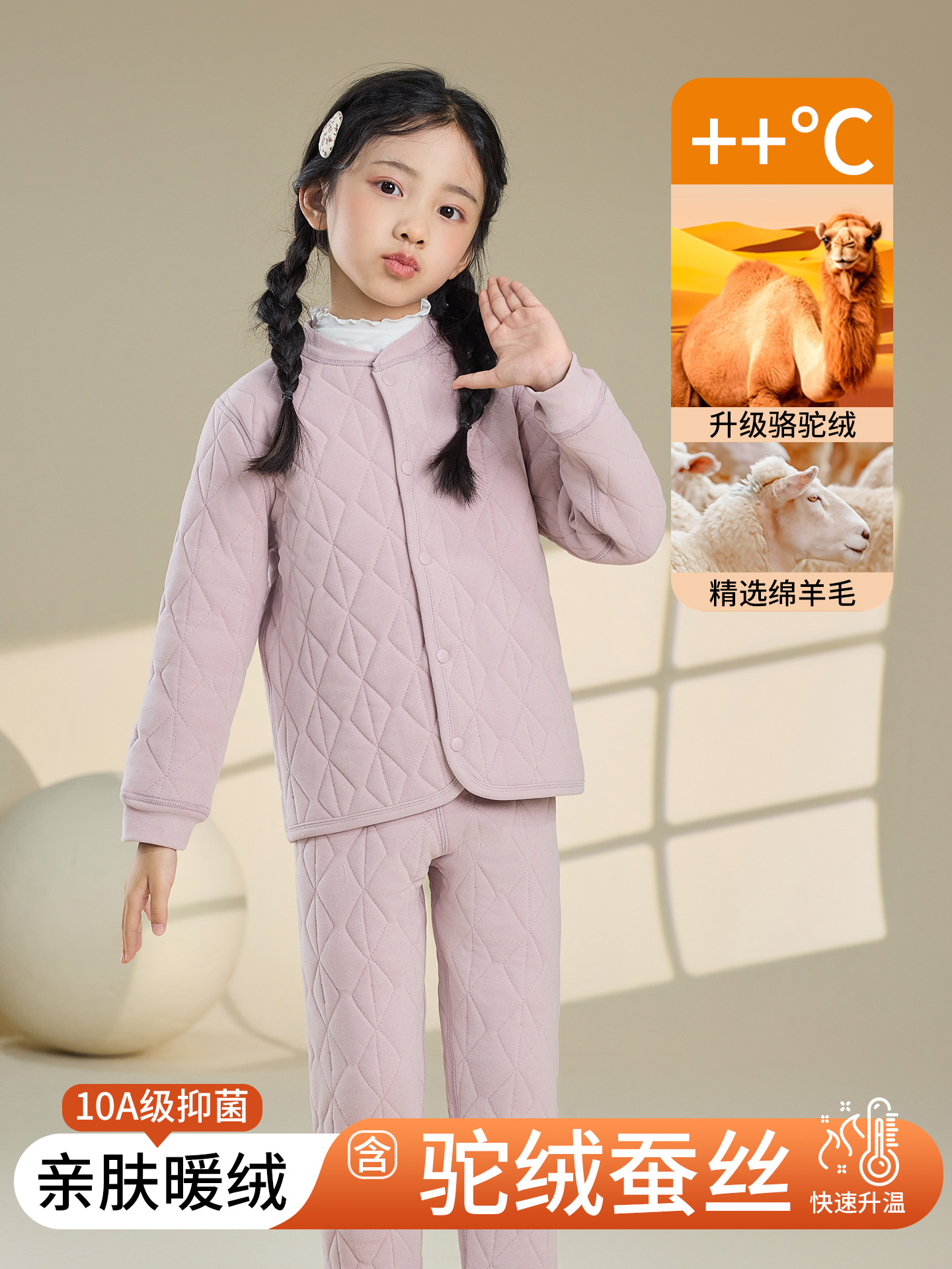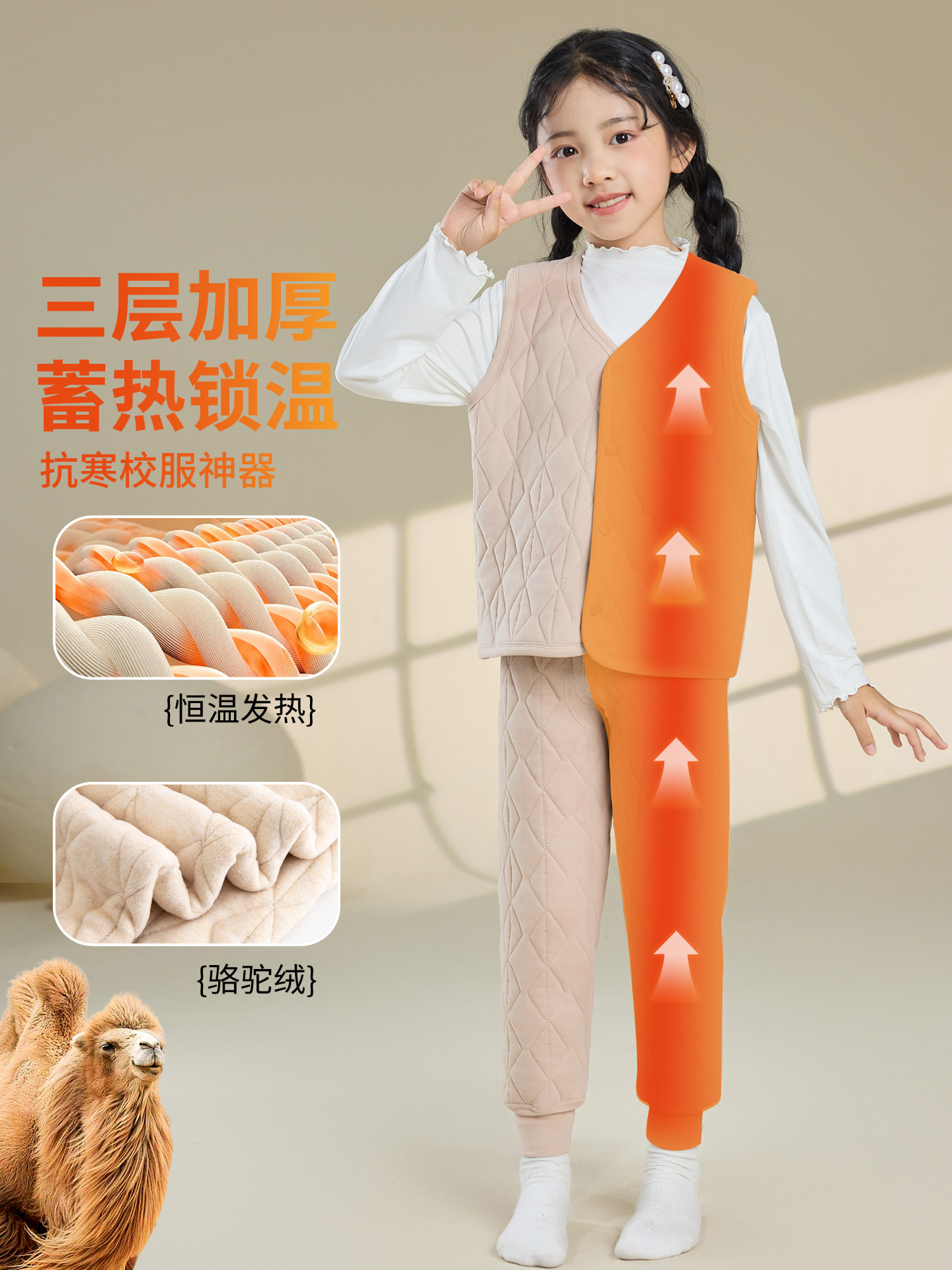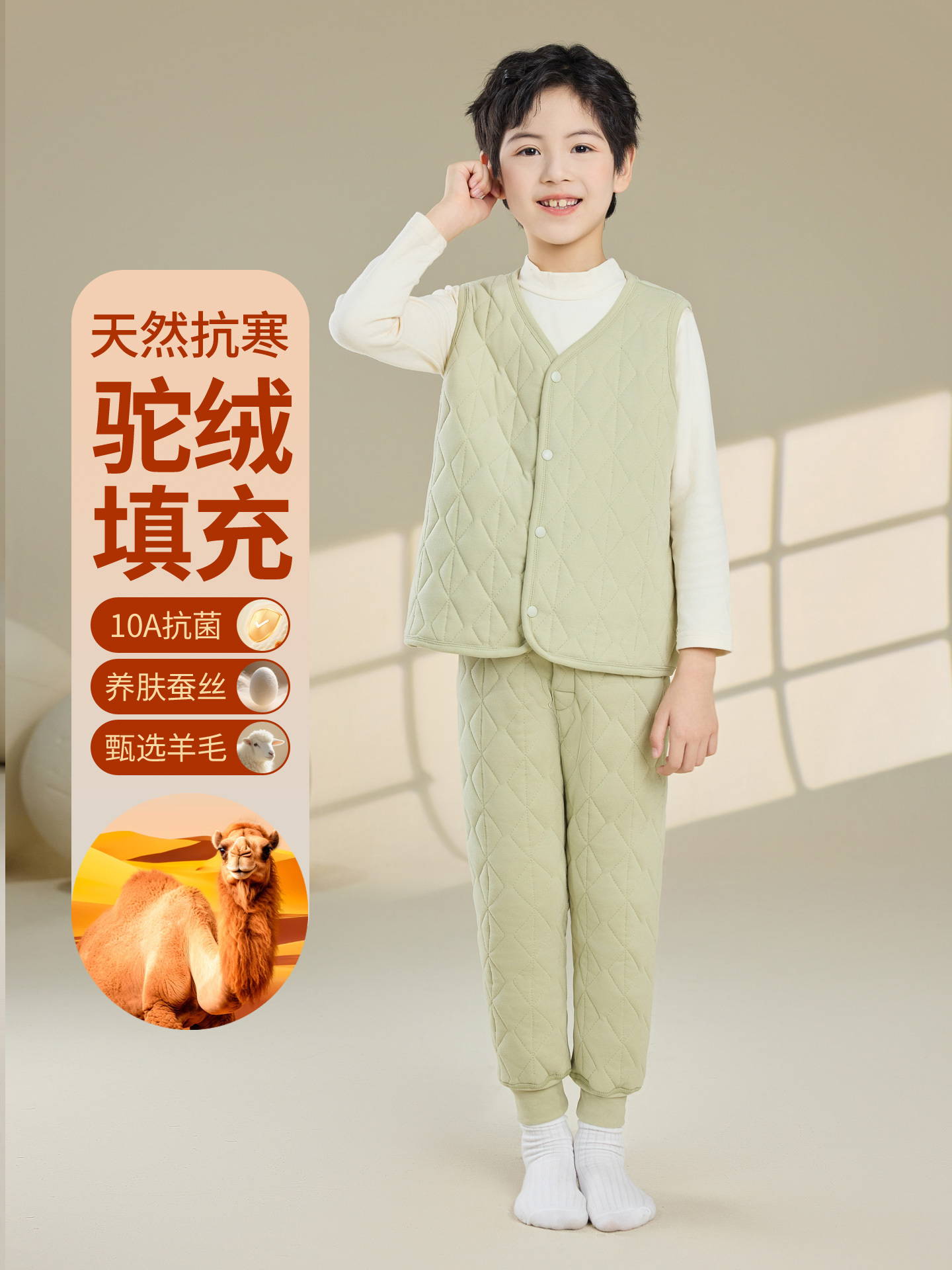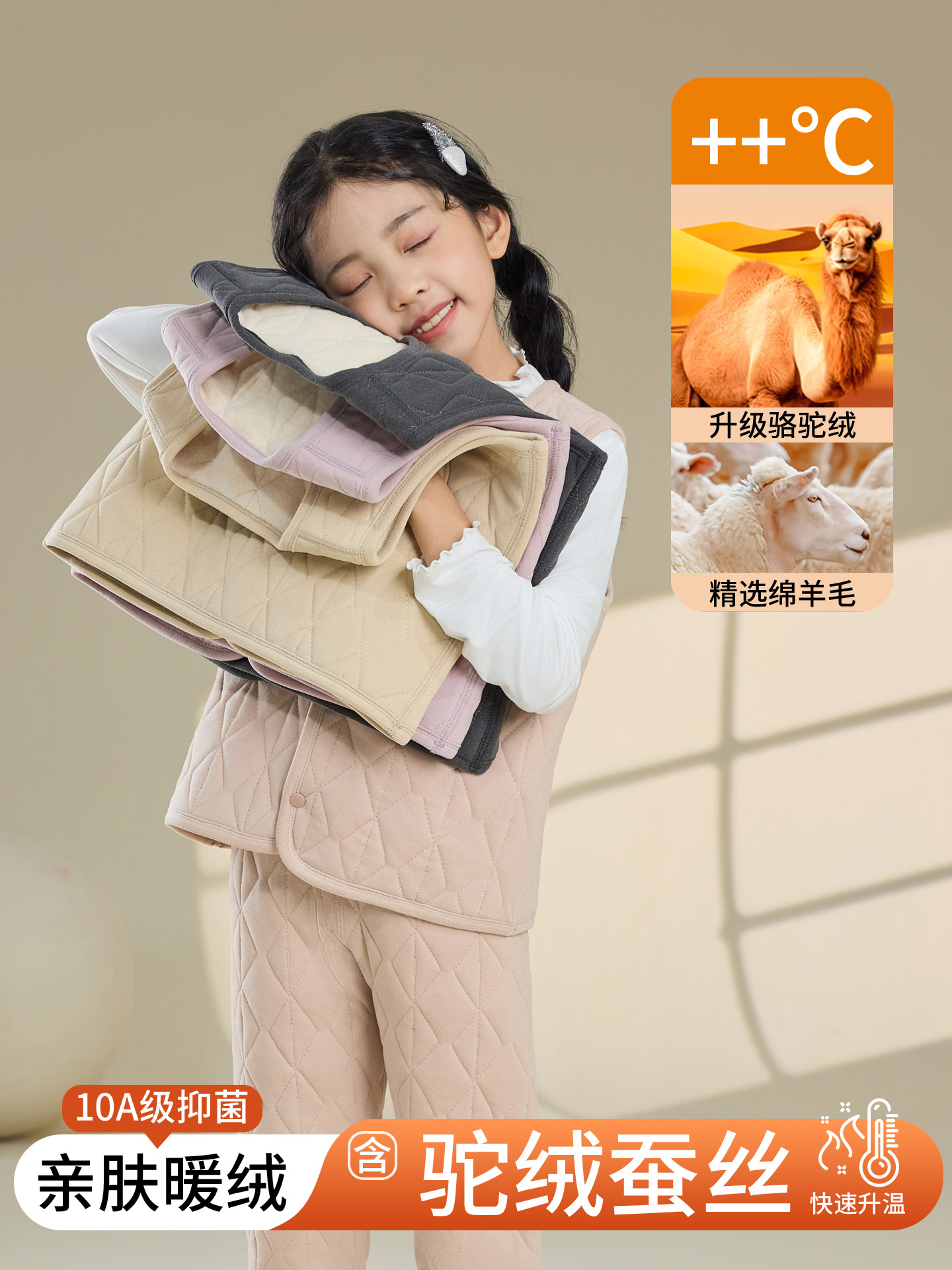 西蒙日记骆驼绒羊毛蚕丝儿童保暖校服神器★