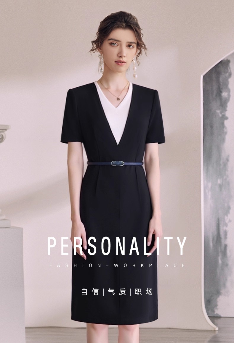 IWY/简单大方假两件西装连衣裙女夏季新款高级感优雅气质显瘦收腰裙子Q1396