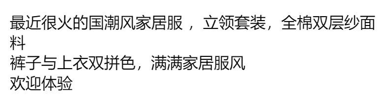 【新品上市】【国潮家居服】国潮风家居服纯棉双层纱情侣家居服全棉睡衣套装立领