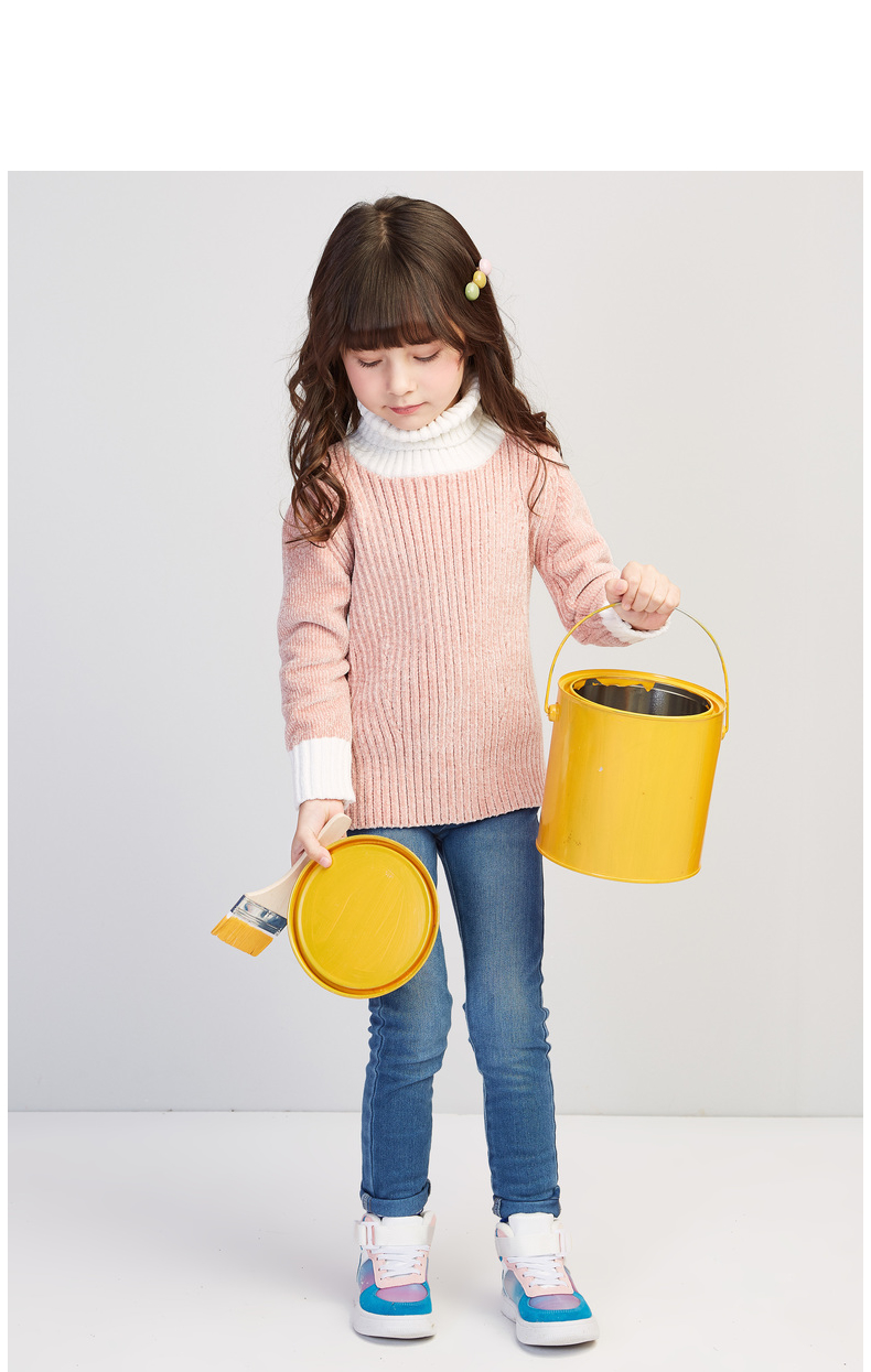 笛莎童装女童毛衣2020冬新款中大童儿童时尚纯色小女孩套头针织衫
