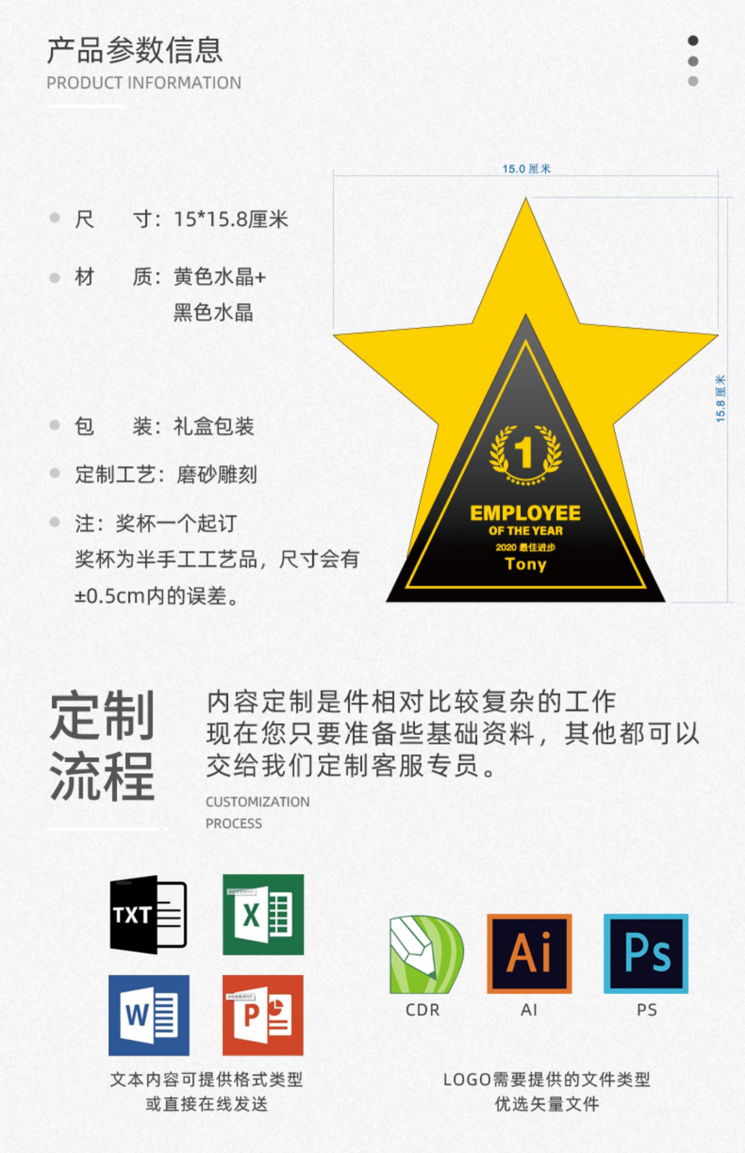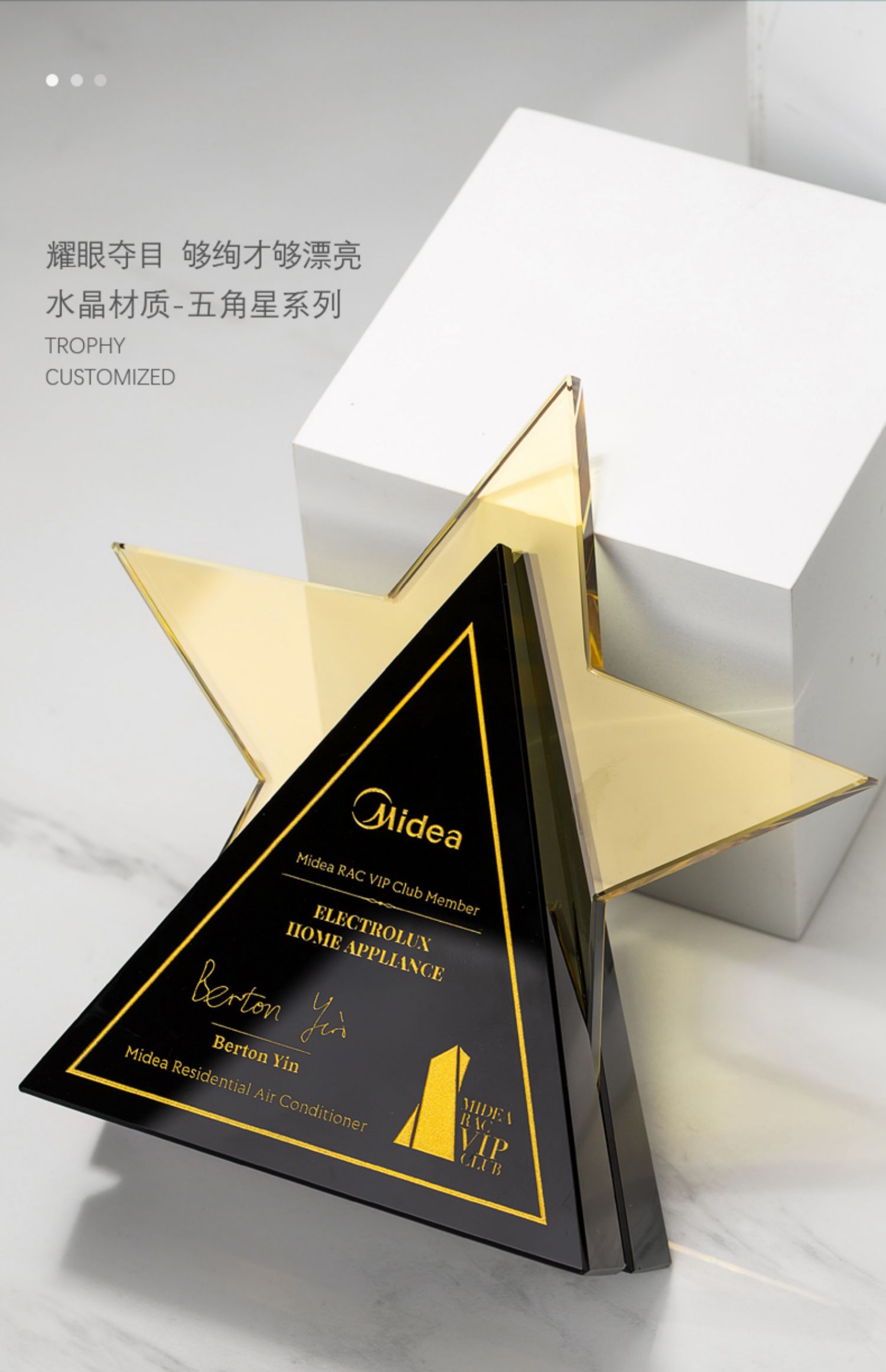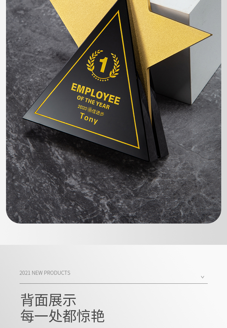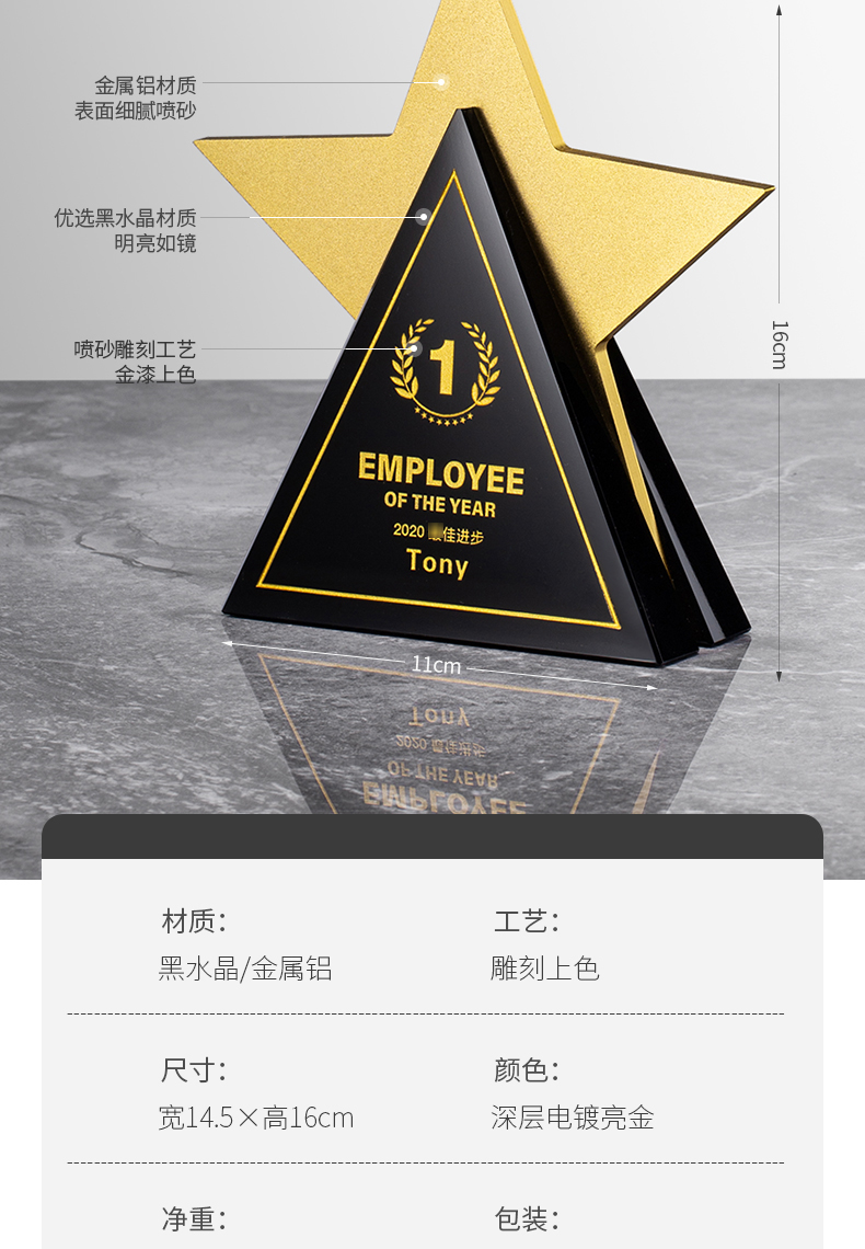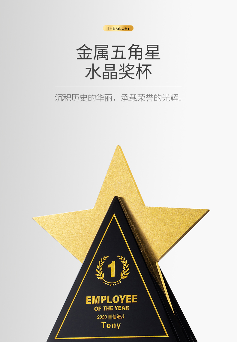 创意五角星水晶奖杯定制高档大气荣誉奖牌订制做优秀员工免费刻字