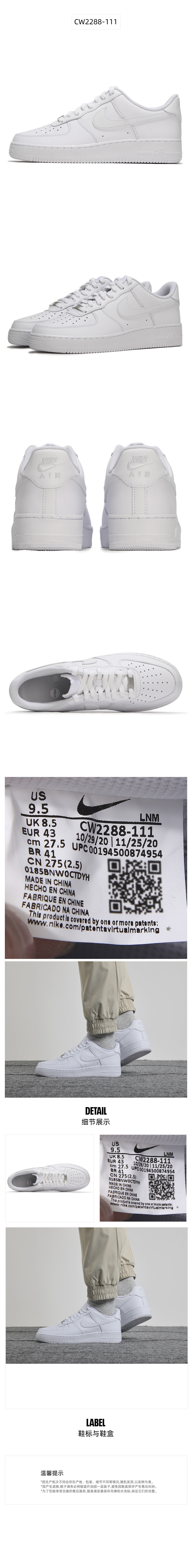 耐克(NIKE)Air Force 1 07男鞋空军一号板鞋经典复古耐磨Air运动休闲鞋 CW2288-111