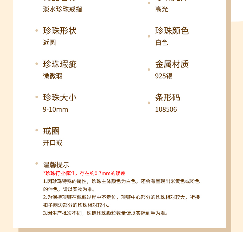 美裕 淡水珍珠戒指9-10mm 开口戒 108506W