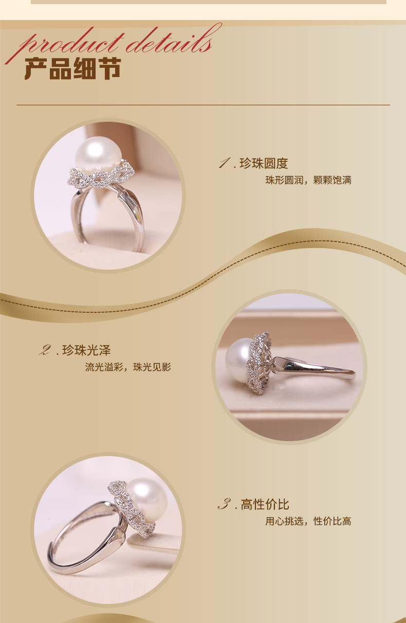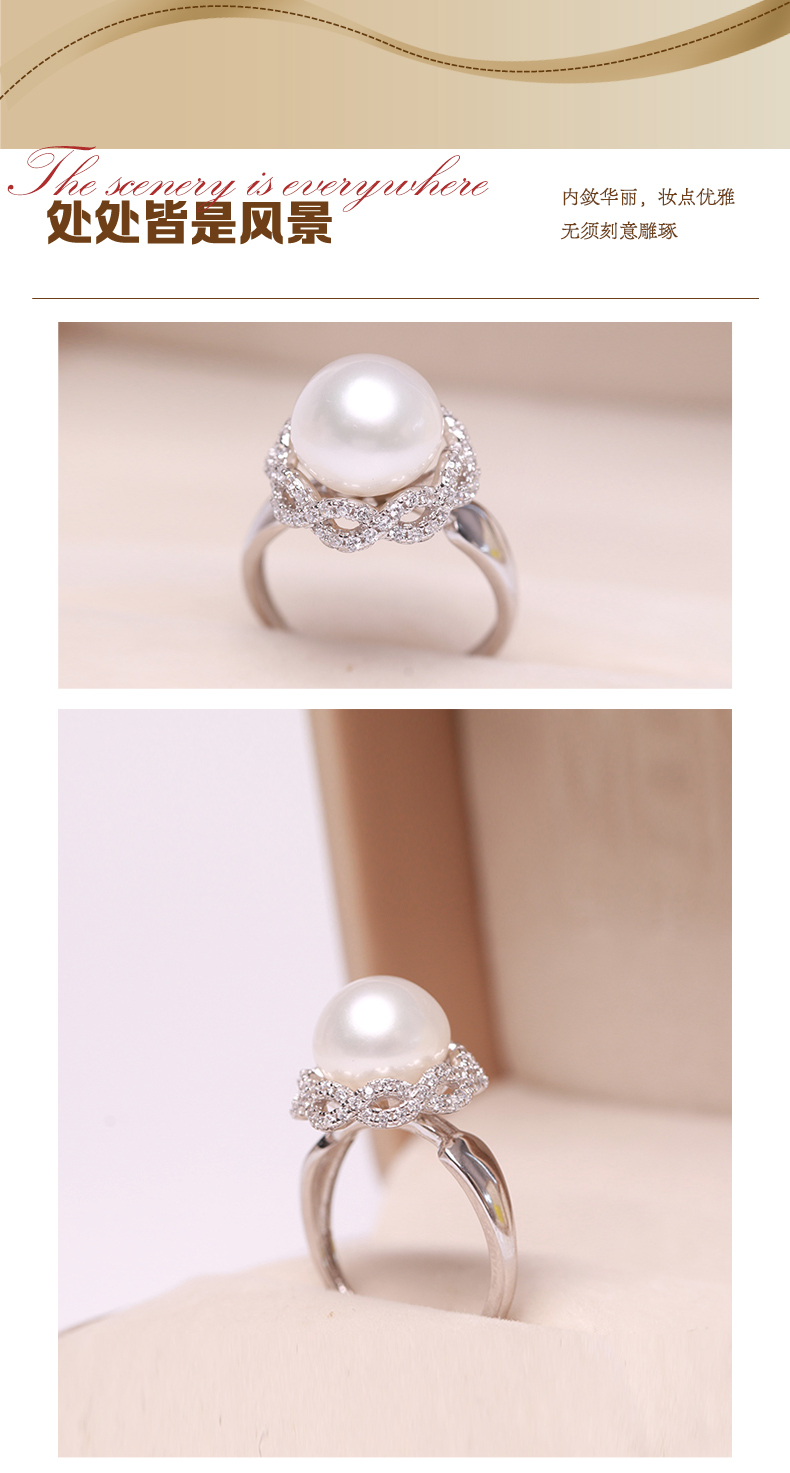 美裕 925银淡水珍珠戒指 开口戒8-9mm 108487W