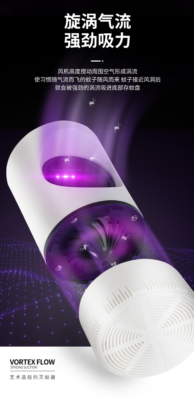 2、蓝紫光灯会360°散发光芒,对蚊子有很强的吸引力,准确诱蚊!这种光就是特别针对蚊子而设计的,不用担心对人体有任何害处!