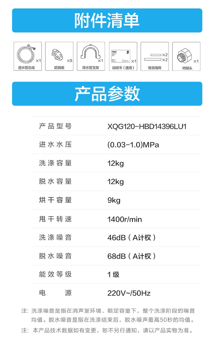 海尔(Haier)洗衣机XQG120-HBD14396LU1
