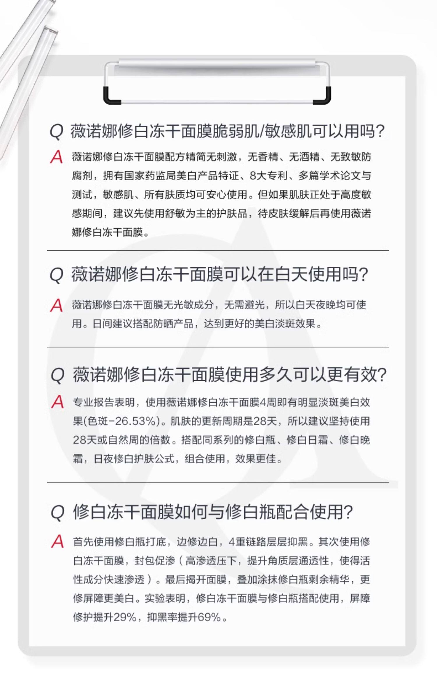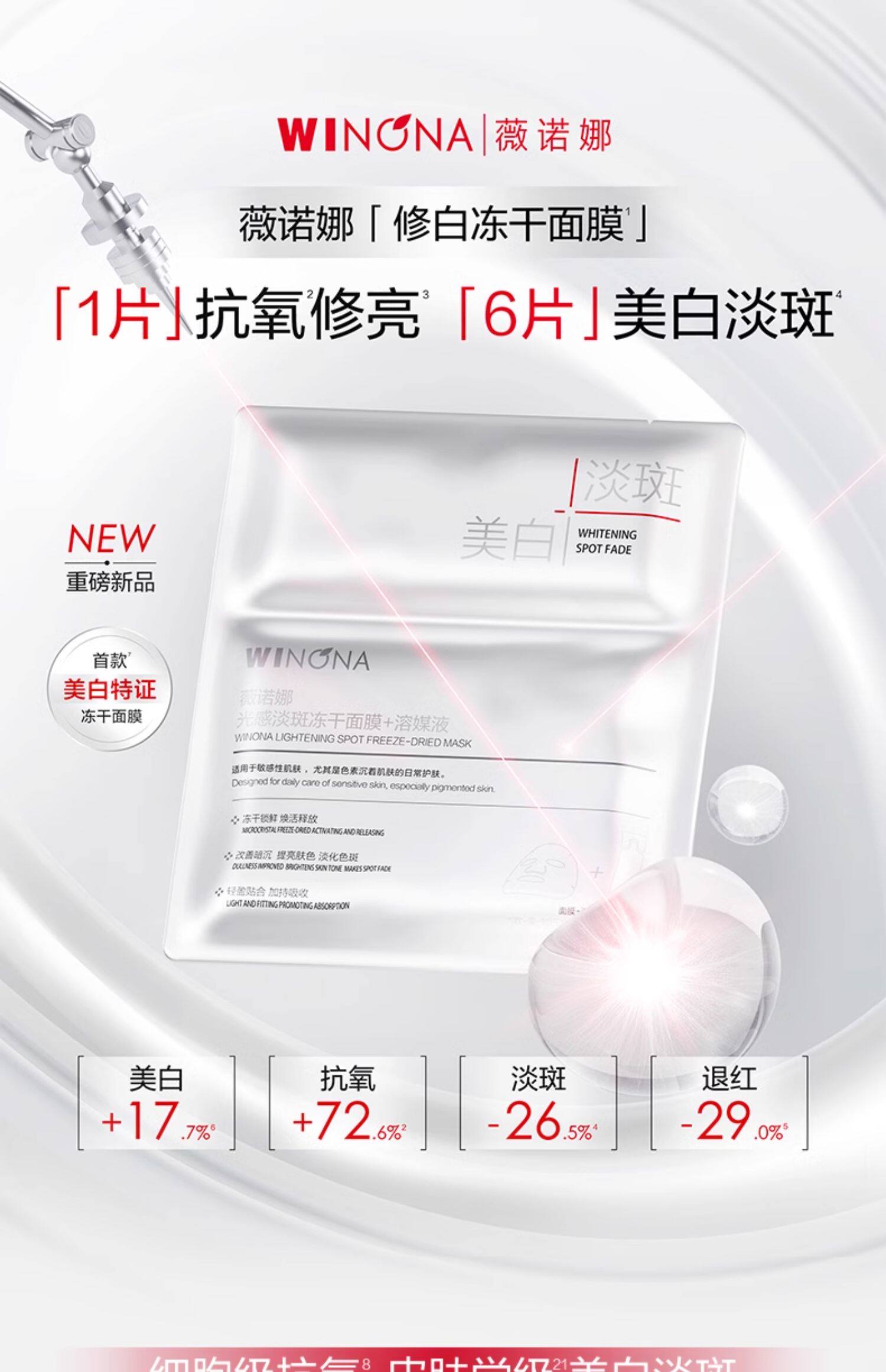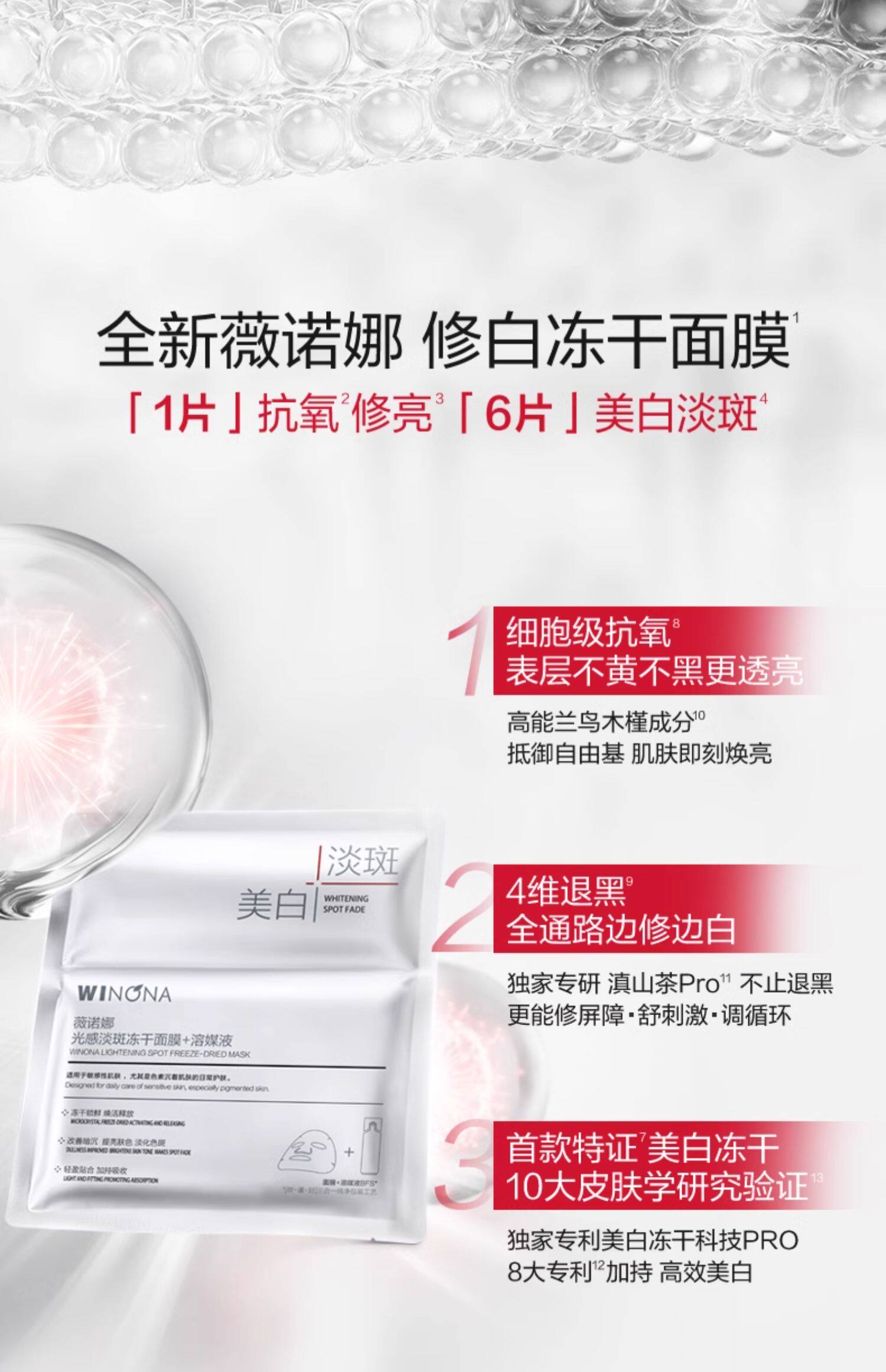 薇诺娜光感淡斑冻干面膜+溶媒液(650mg+20ml)/片*6片 / 盒(修白冻干面膜)