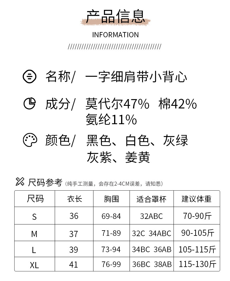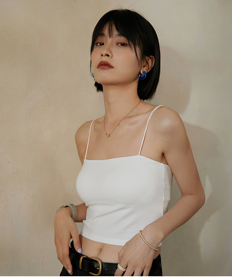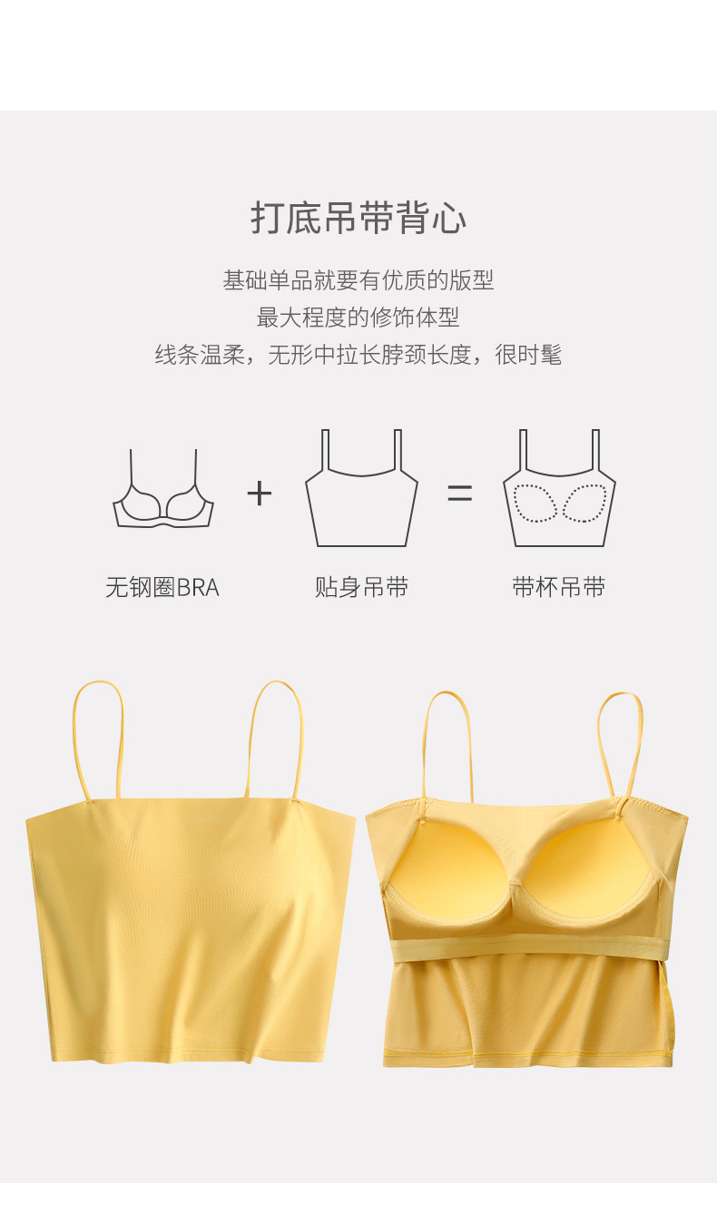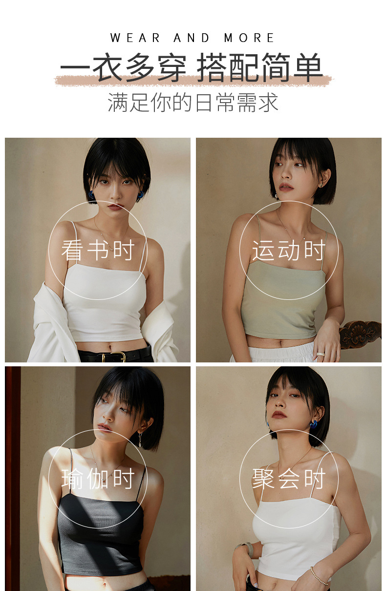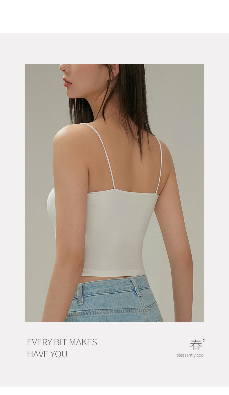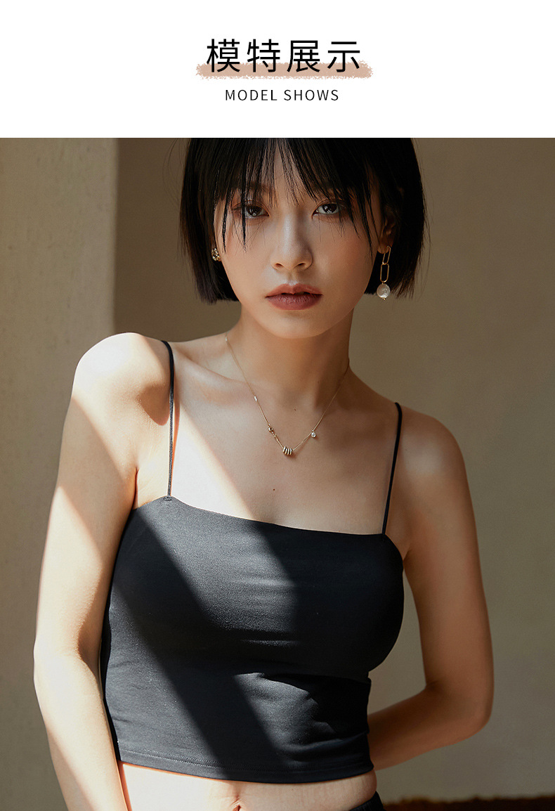 【69元/2件】罩杯一体式带胸垫莫代尔棉吊带 内搭外穿细肩带背心