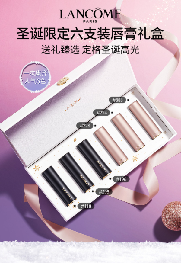 【圣诞专场】兰蔻(LANCOME)圣诞唇膏6支装礼盒(哑光196+295+柔润118+柔雾888+274+278)彩妆口红套装圣诞节礼物送女生