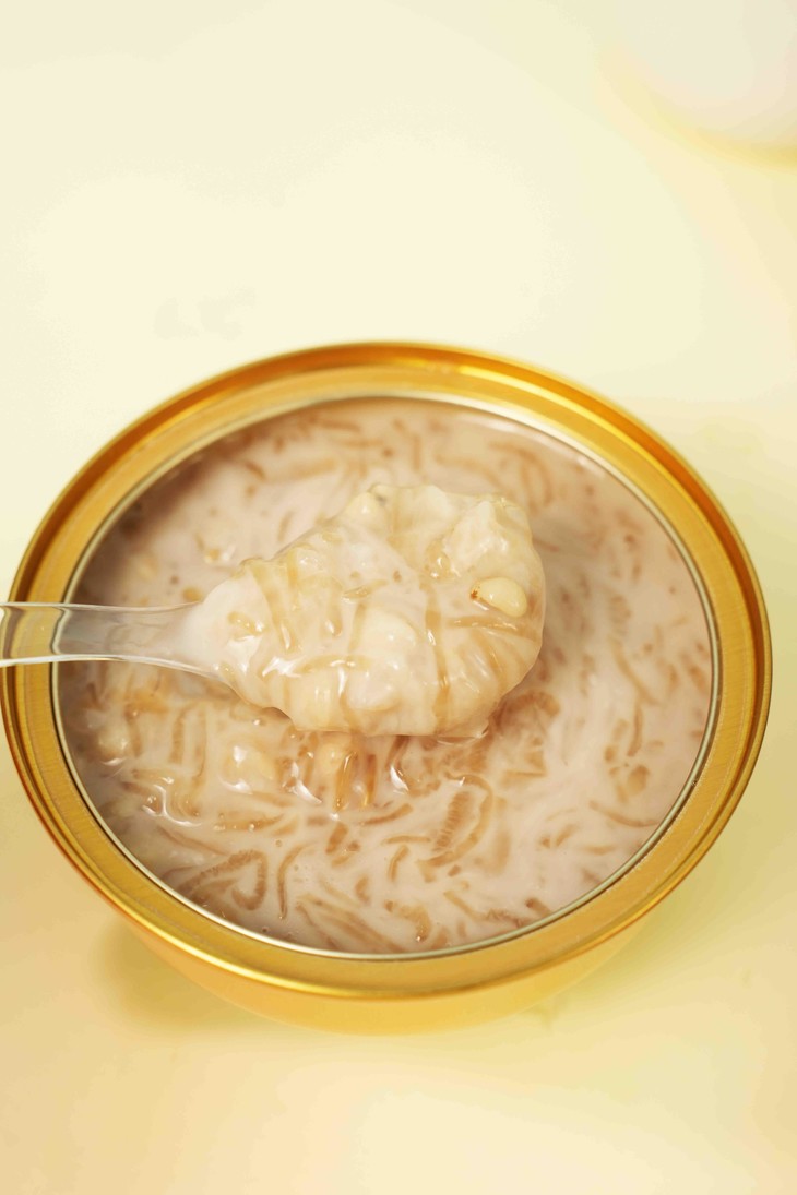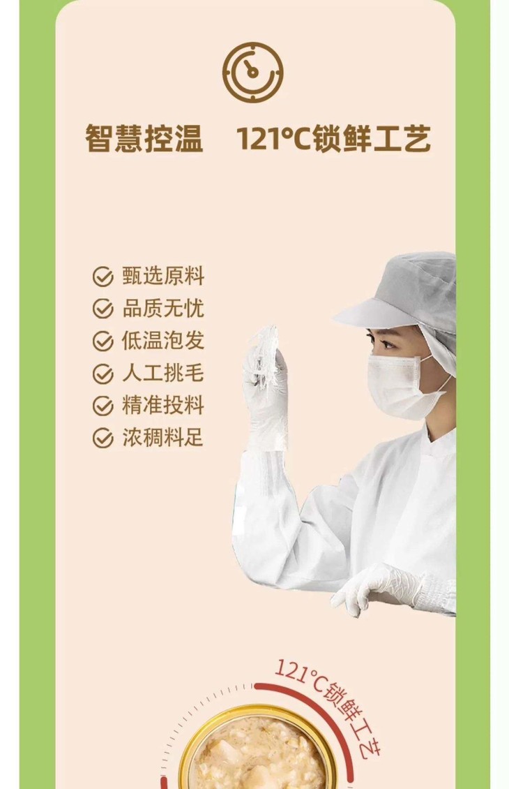 精选印尼顶级白燕盏,碗碗足料满满诚意 肉眼实打实能看见!!固形物含量不低于60% 印尼进口燕窝,丝丝分明,每碗添加燕窝 精选阿胶 古田银耳 谷物炖煮,清甜润滑奶香浓 0脂低卡,开盖即食