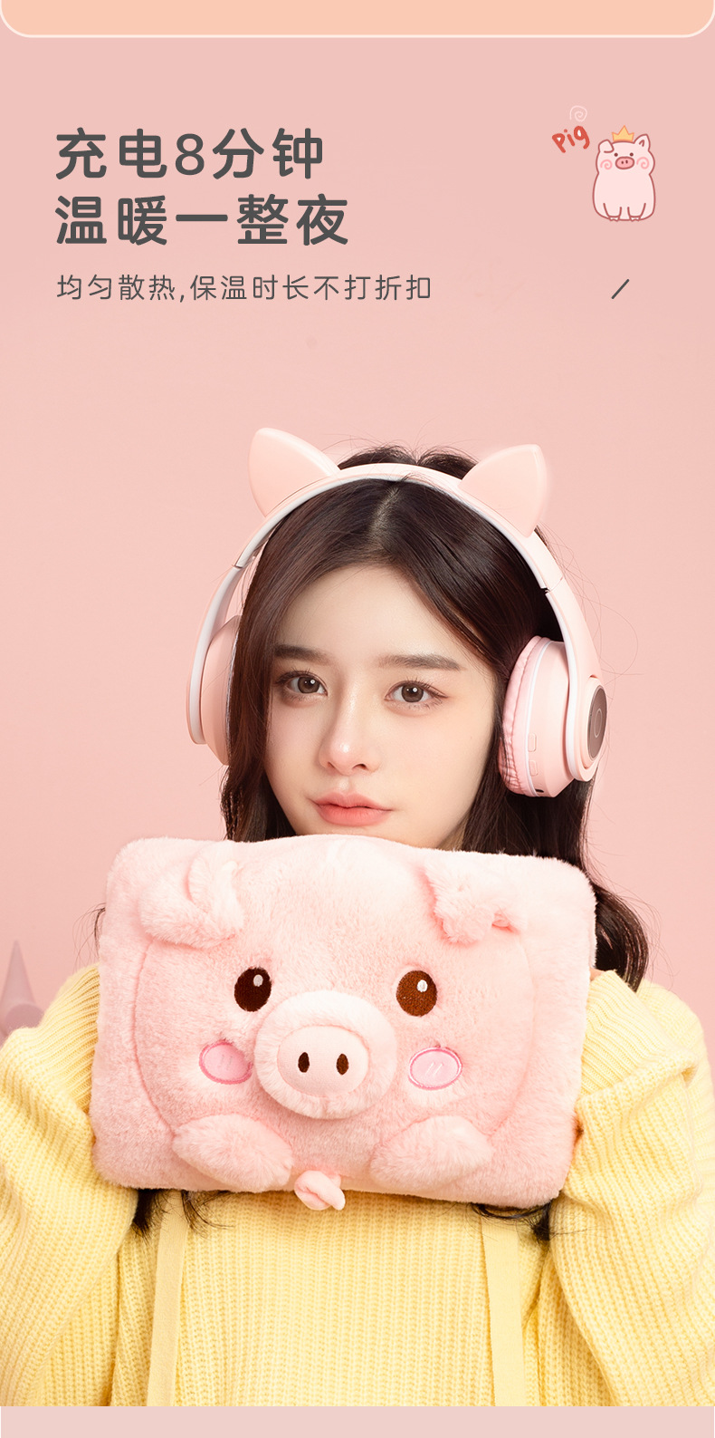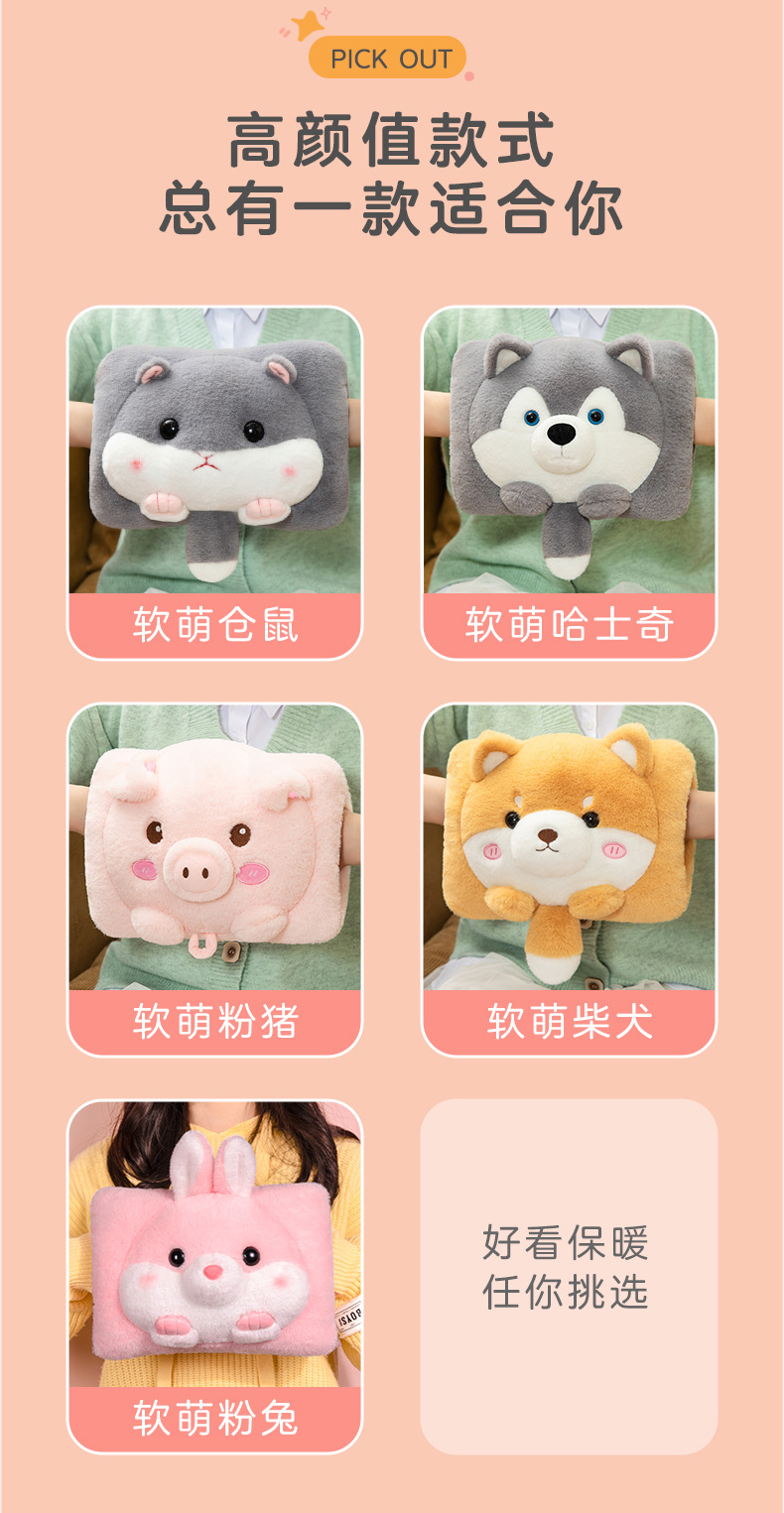 好看又保暖【温暖一整个冬季!卡通系列暖手宝】可拆卸设计,脏污随心洗,热水袋充电式防爆卡通毛绒暖手宝方形注水可爱女生暖宝宝。rc