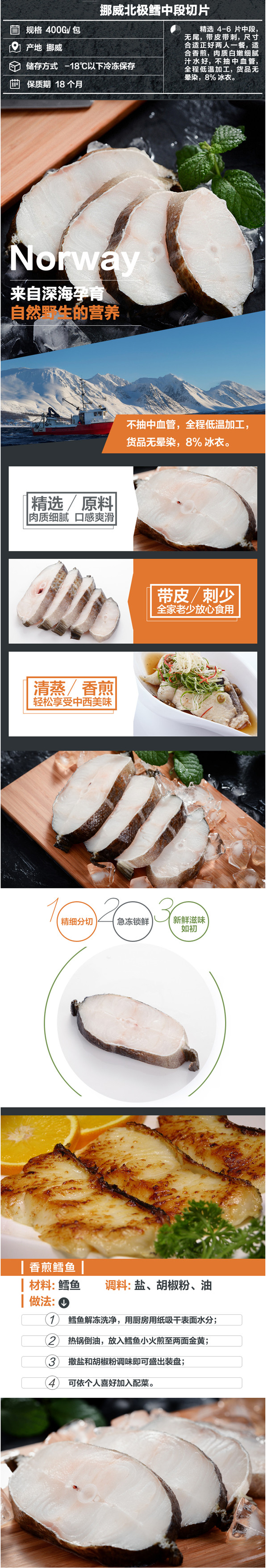 速冻挪威北极鳕块/400g/袋