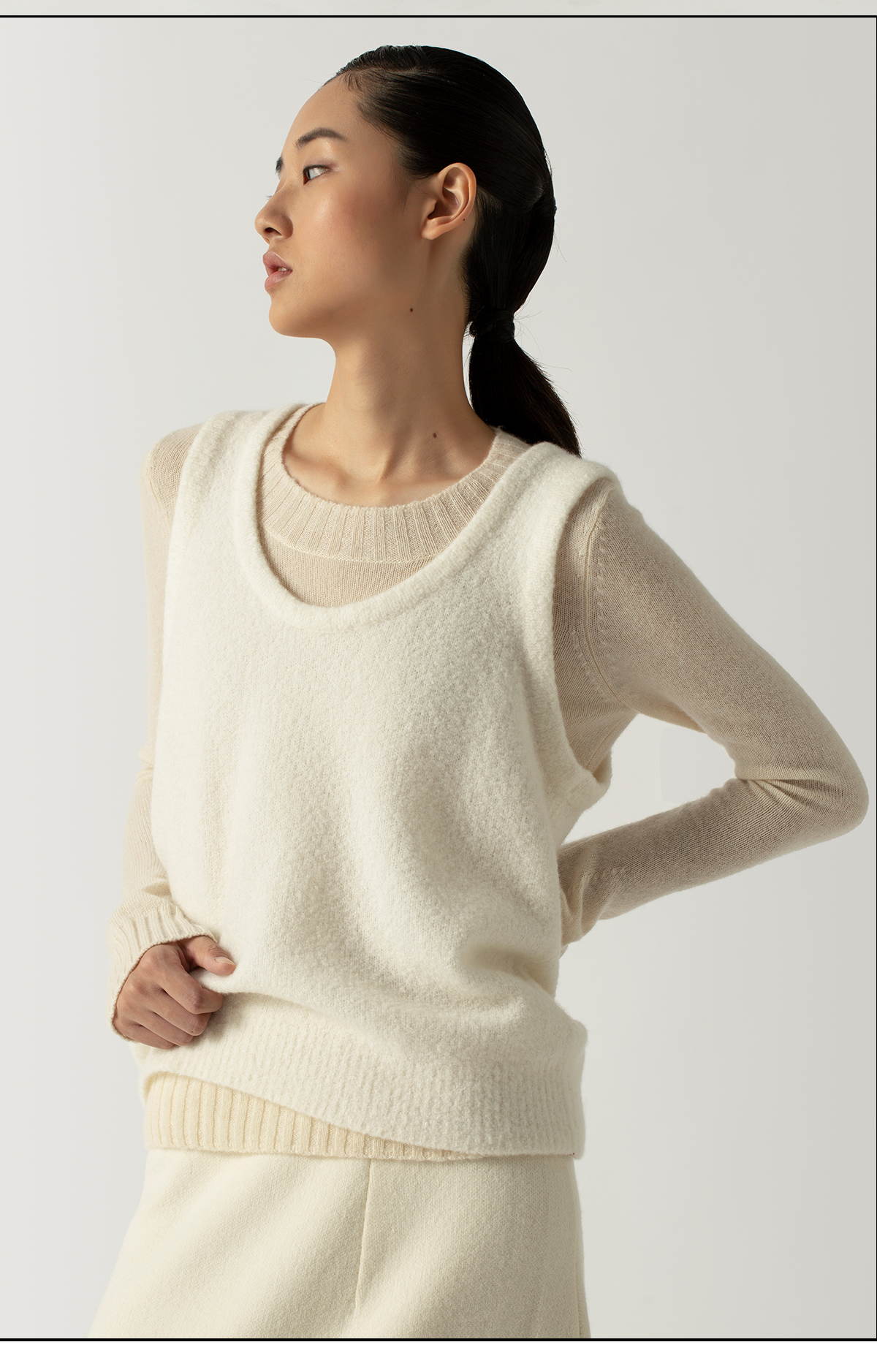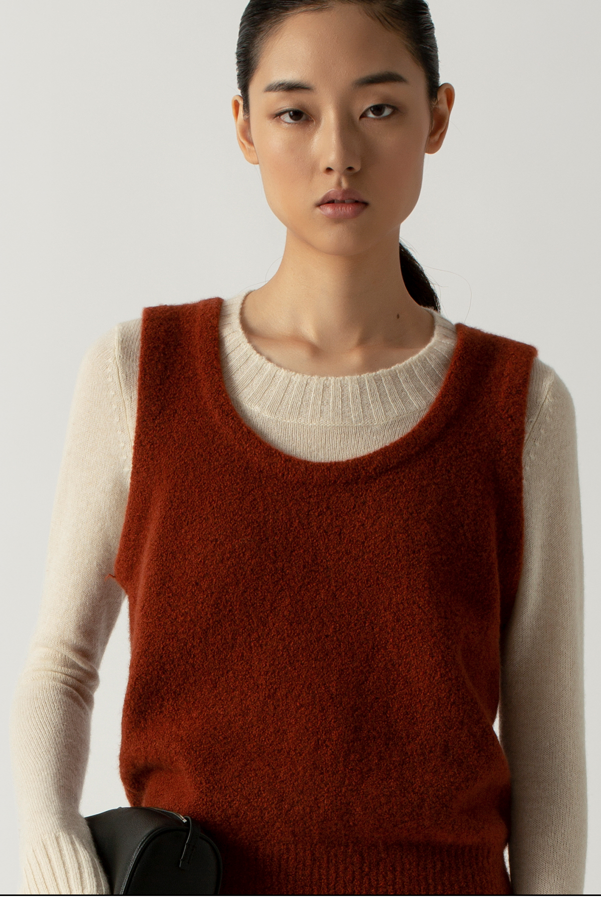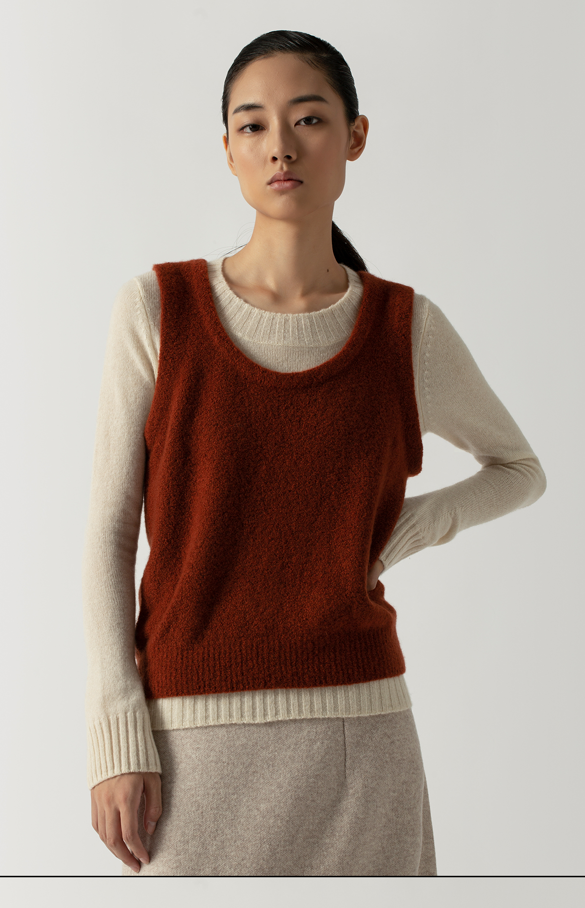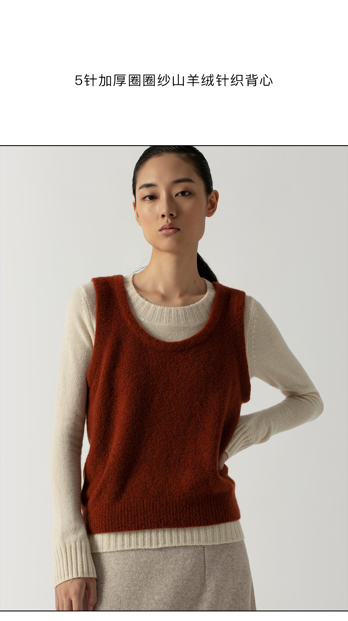 322工房叠搭背心圈圈纱山羊绒打底衫2022年秋冬新款纯色百搭针织