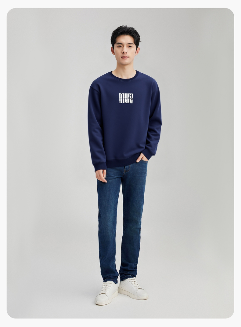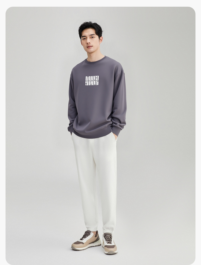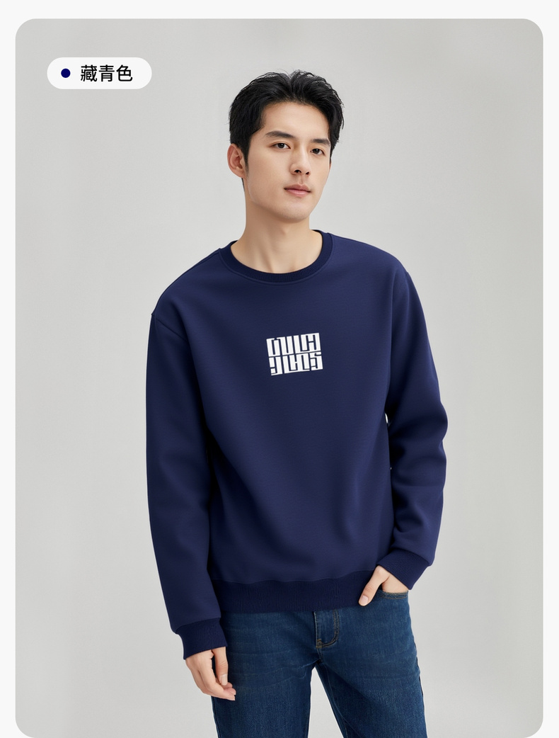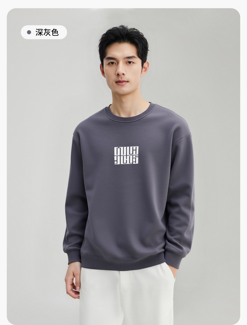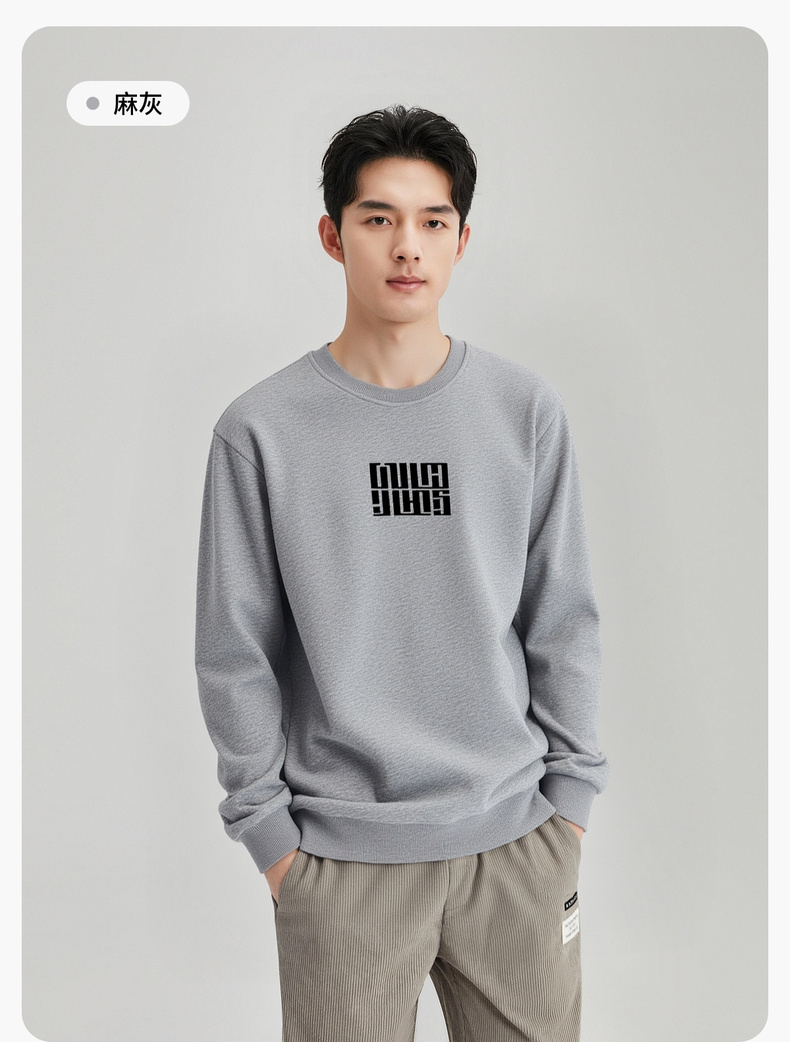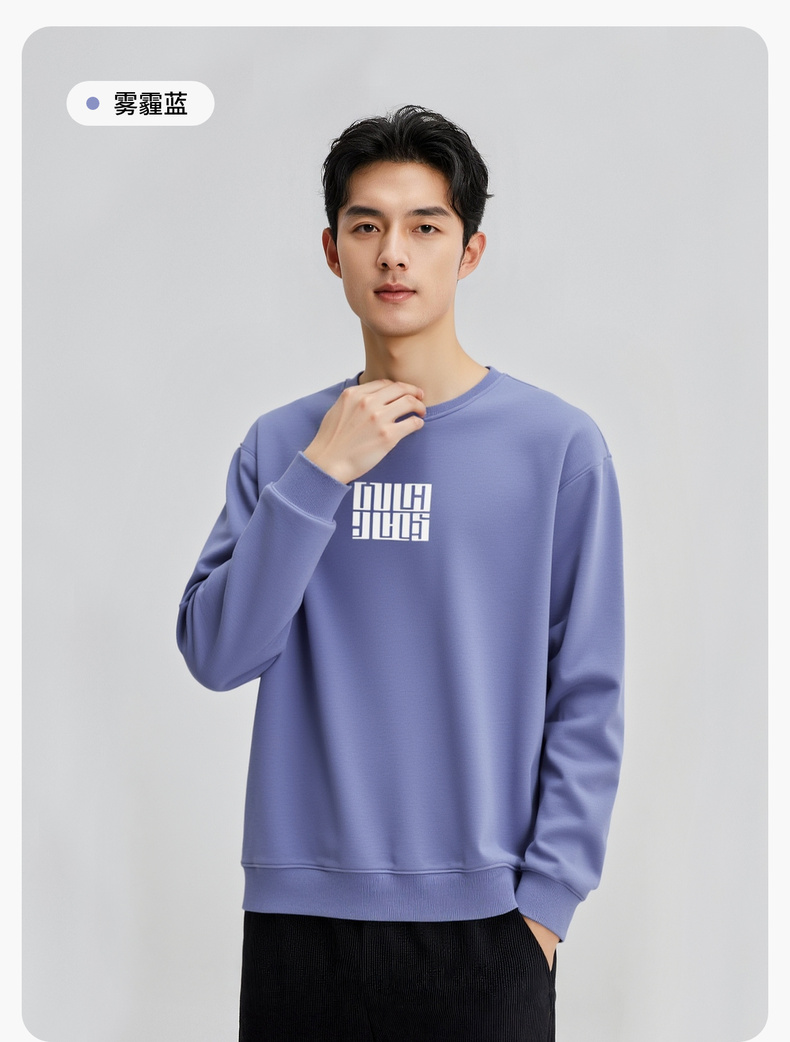 情侣款字母印花圆领套头卫衣2025秋季新款棉质宽松弹力上衣