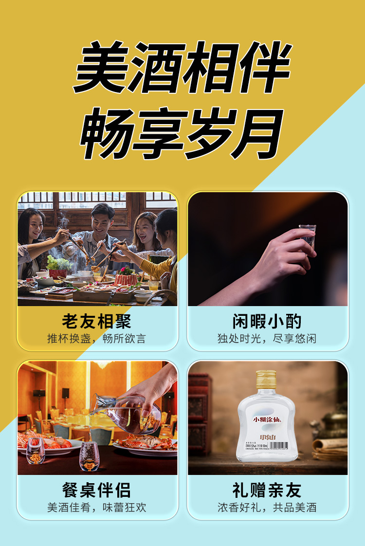 小糊涂仙(太极小仙酒)白酒浓香型52度小酒光瓶粮食酒裸瓶装 52度 100mL