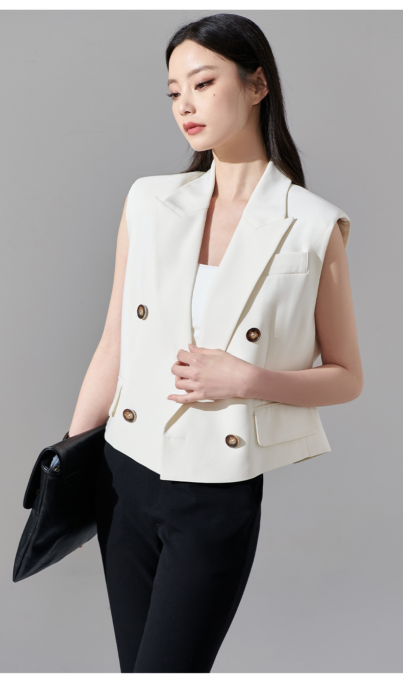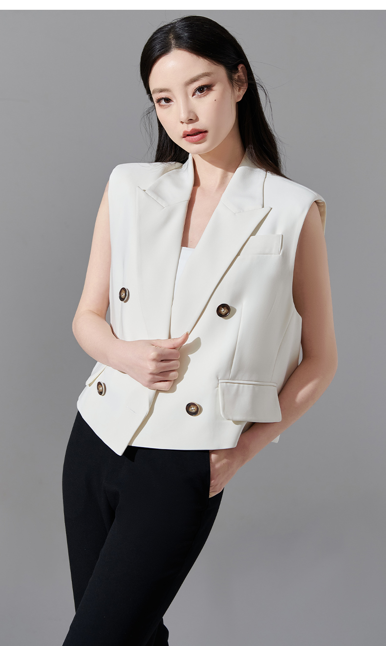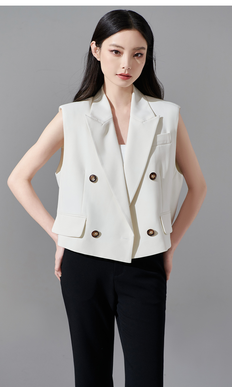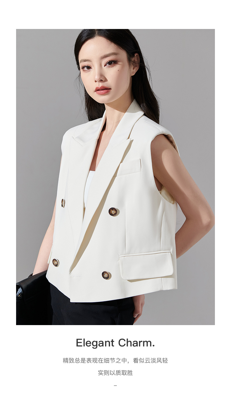 剩L/XL 芳外2026春季新款黑色百搭双排扣无袖外套女宽松休闲短款马夹0092