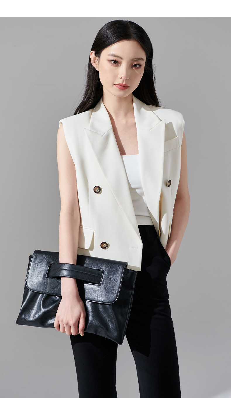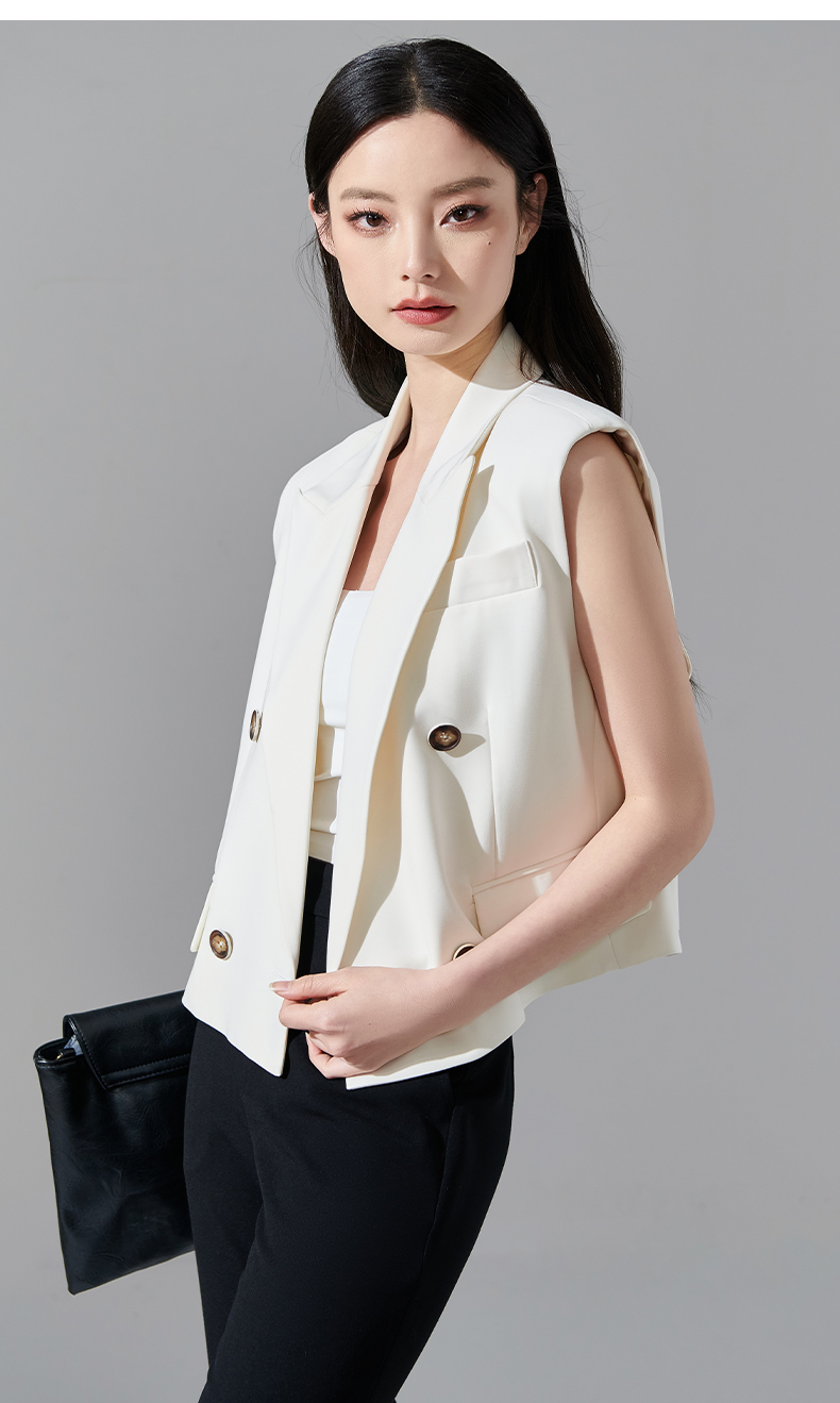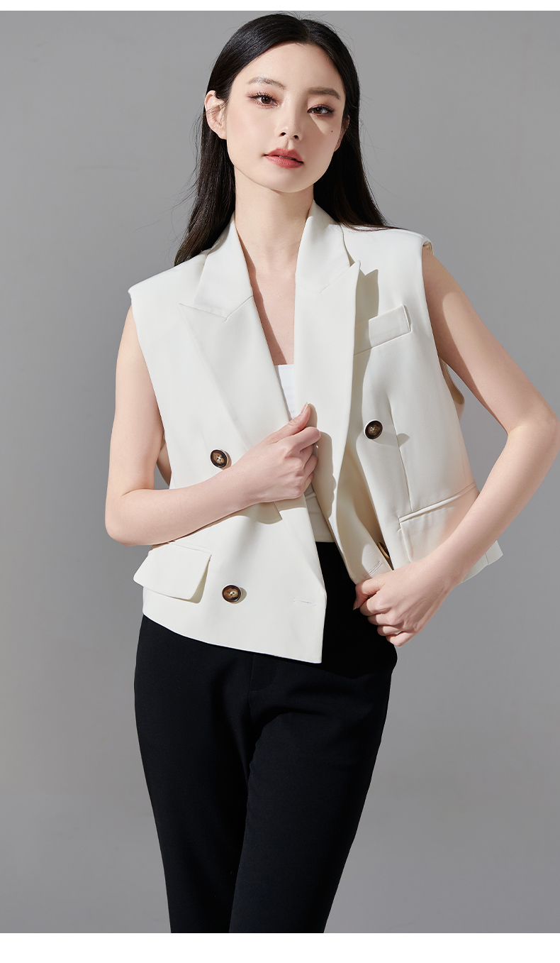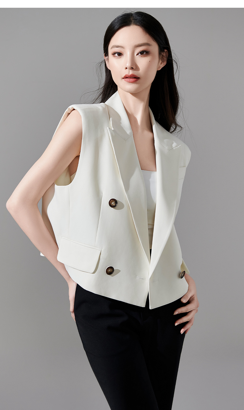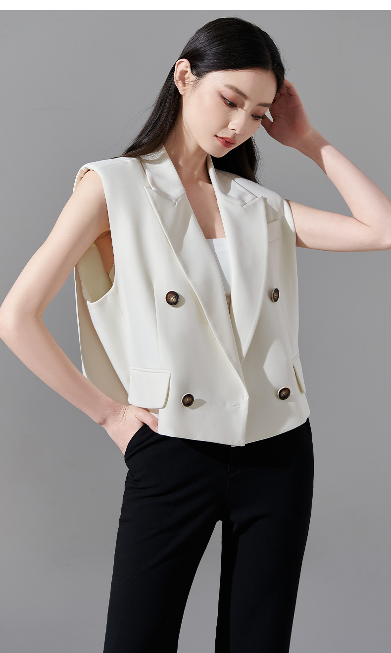 剩L/XL 芳外2026春季新款黑色百搭双排扣无袖外套女宽松休闲短款马夹0092