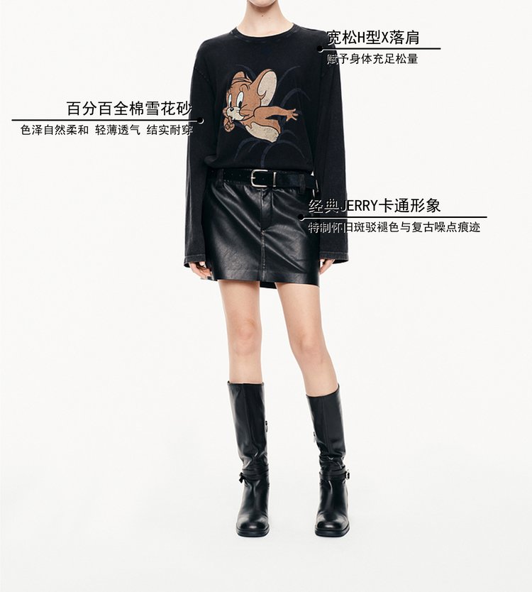 经典Jerry卡通形象,以印花的方式可爱再现于前幅&后背,