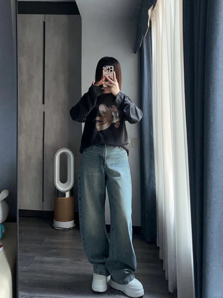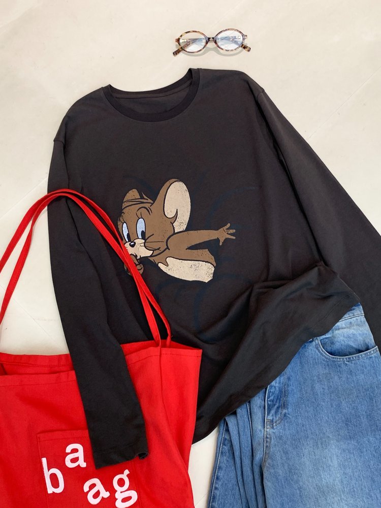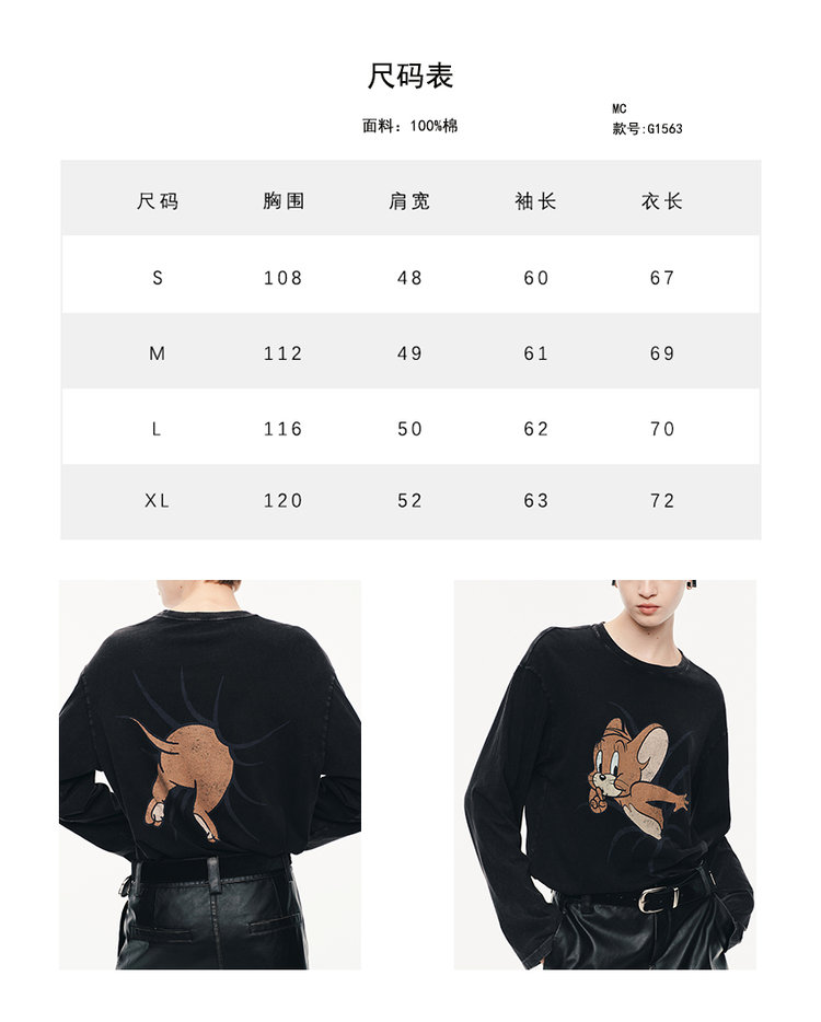 预售10天左右发【高品质私服】【MC猫和老鼠联名系列棉质印花长袖T恤】舒适藏肉/显瘦显薄 色泽自然柔和,兼具高级质感与素雅格调G1563-CC【无标出货 介意慎拍】