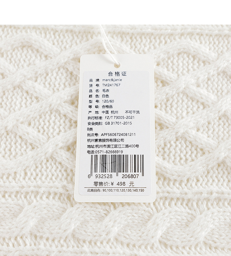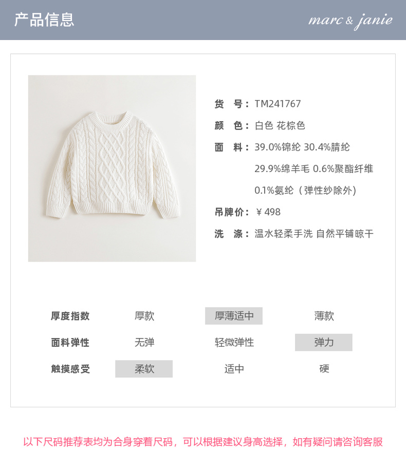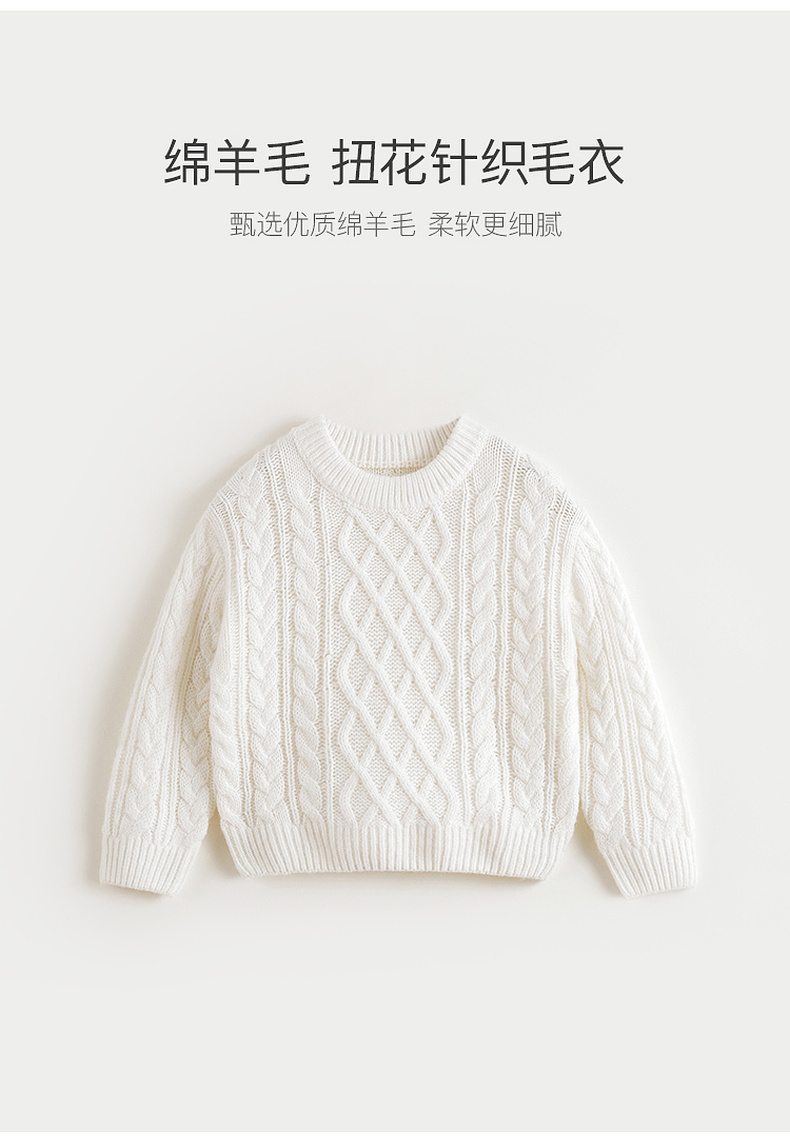 马克珍妮男童立体扭花绵羊毛毛衣儿童针织衫2024年秋冬新款241767
