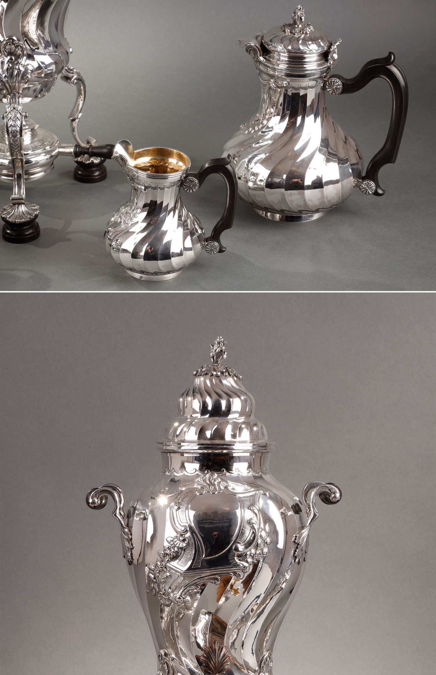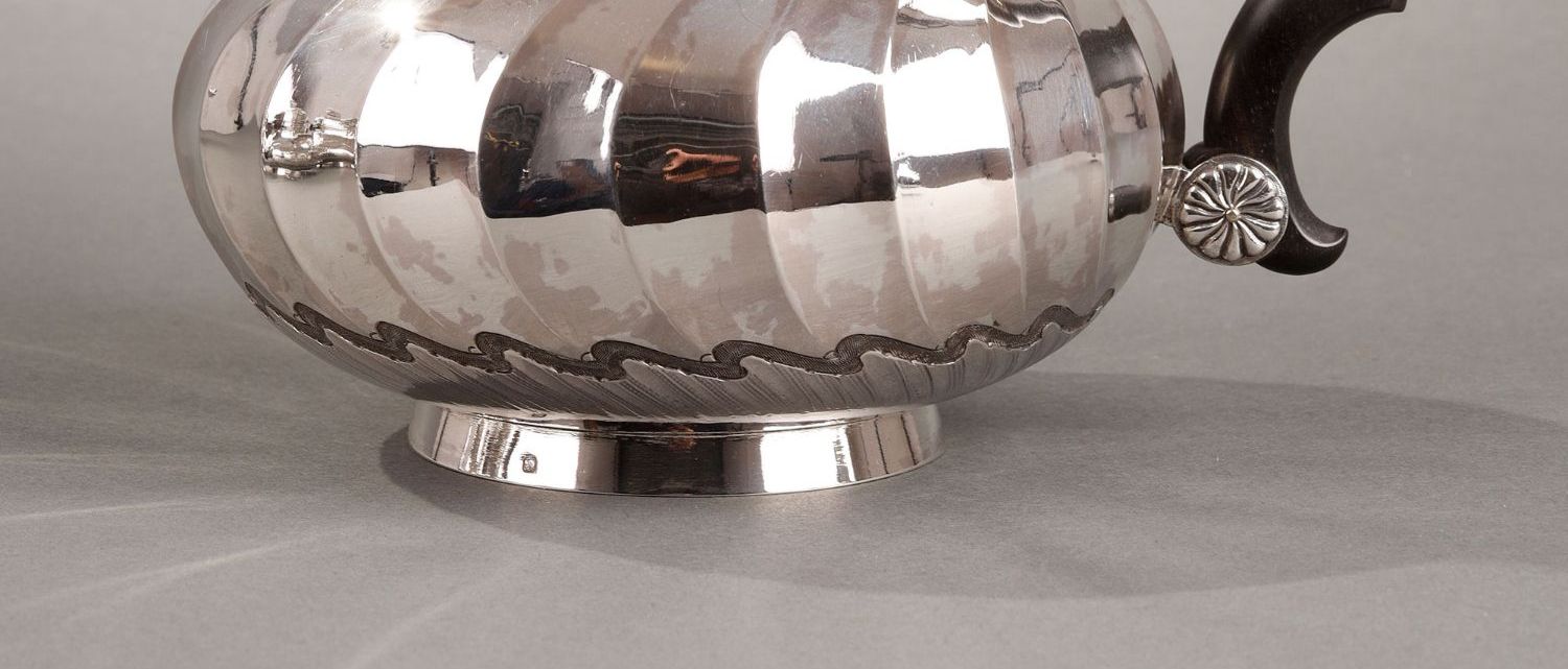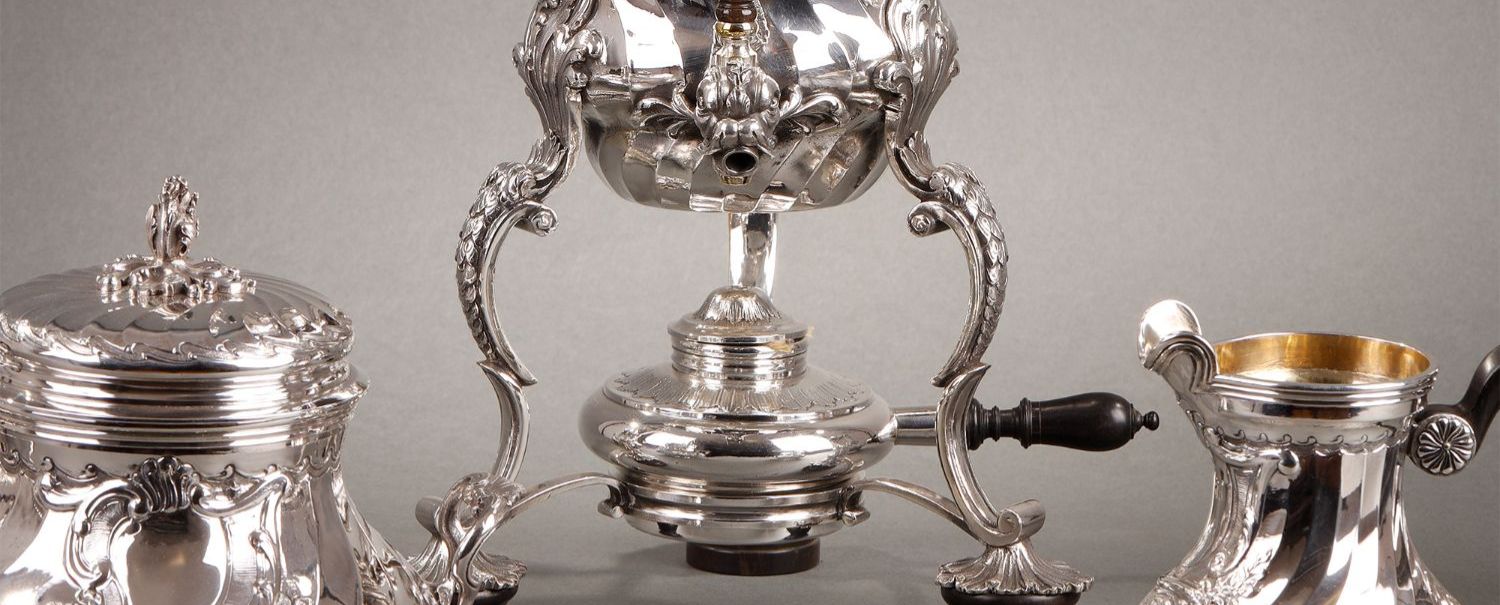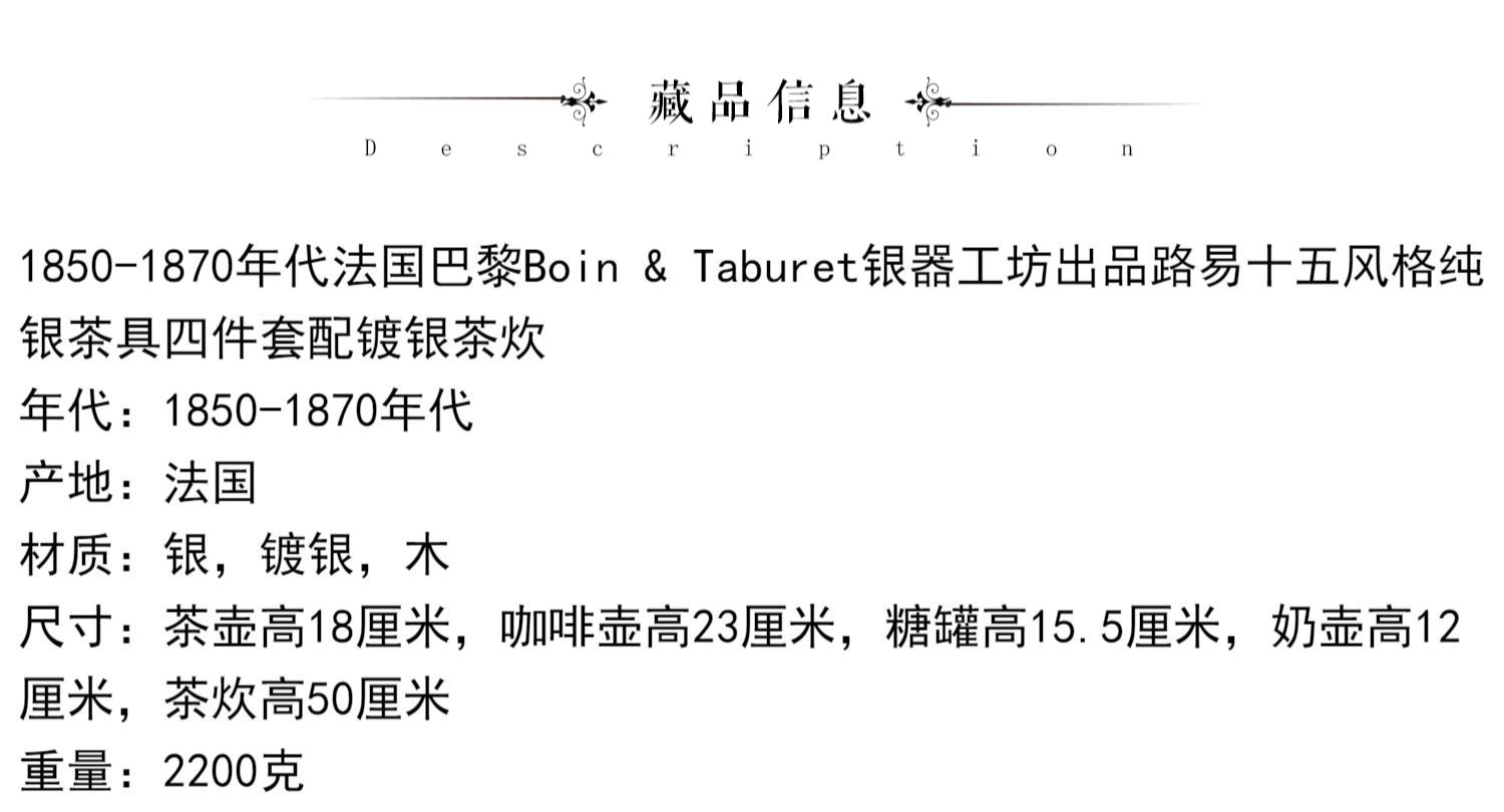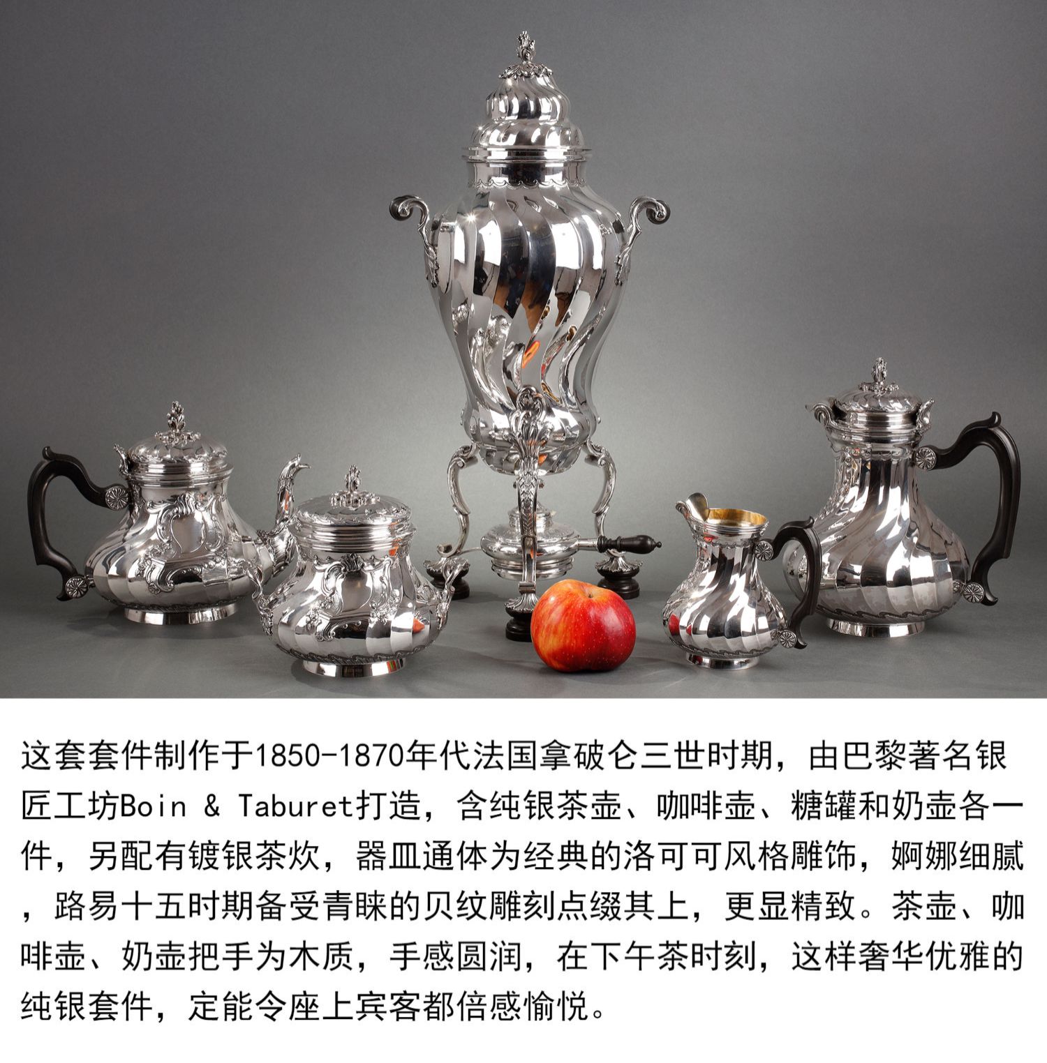 独角鹿西洋古董银器Boin & Taburet工坊纯银下午茶具镀银茶炊