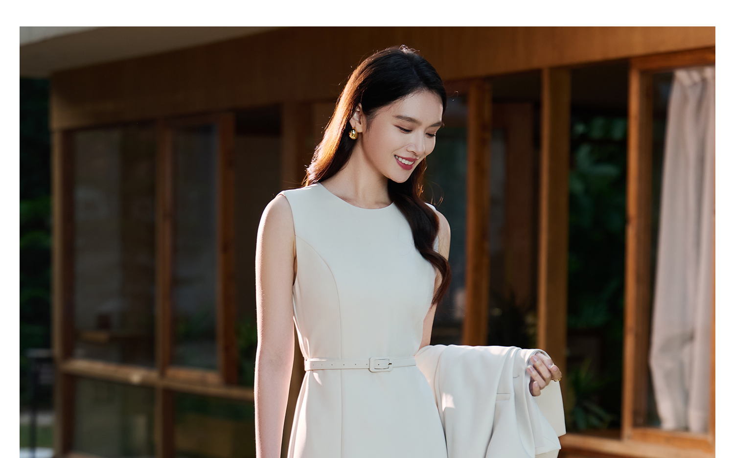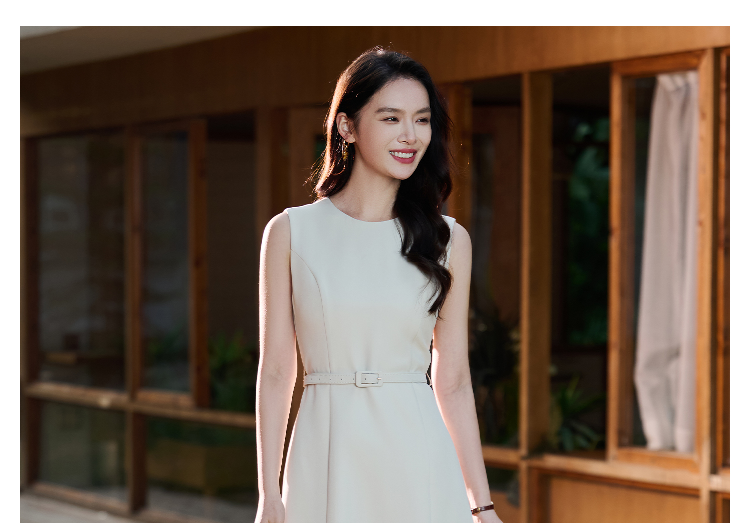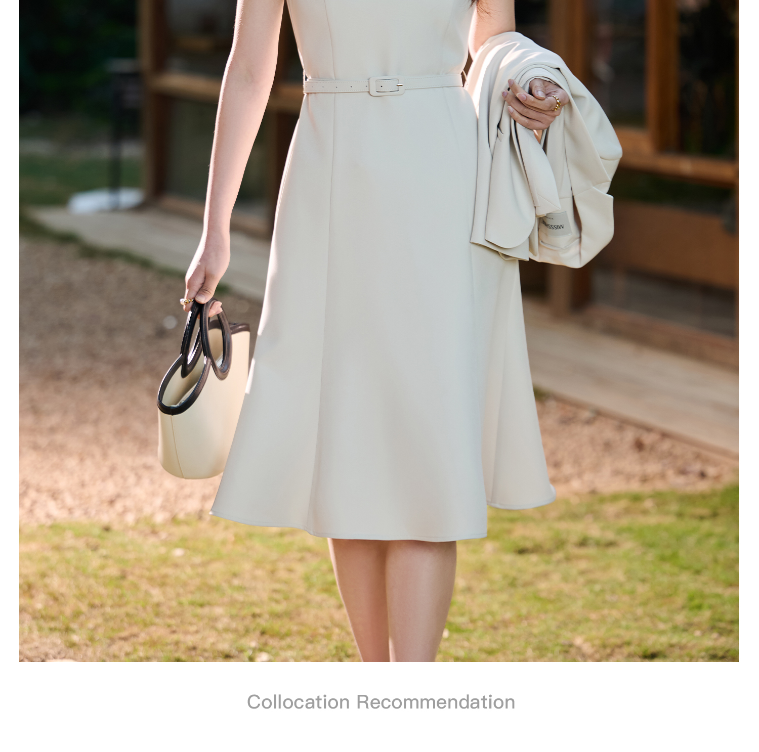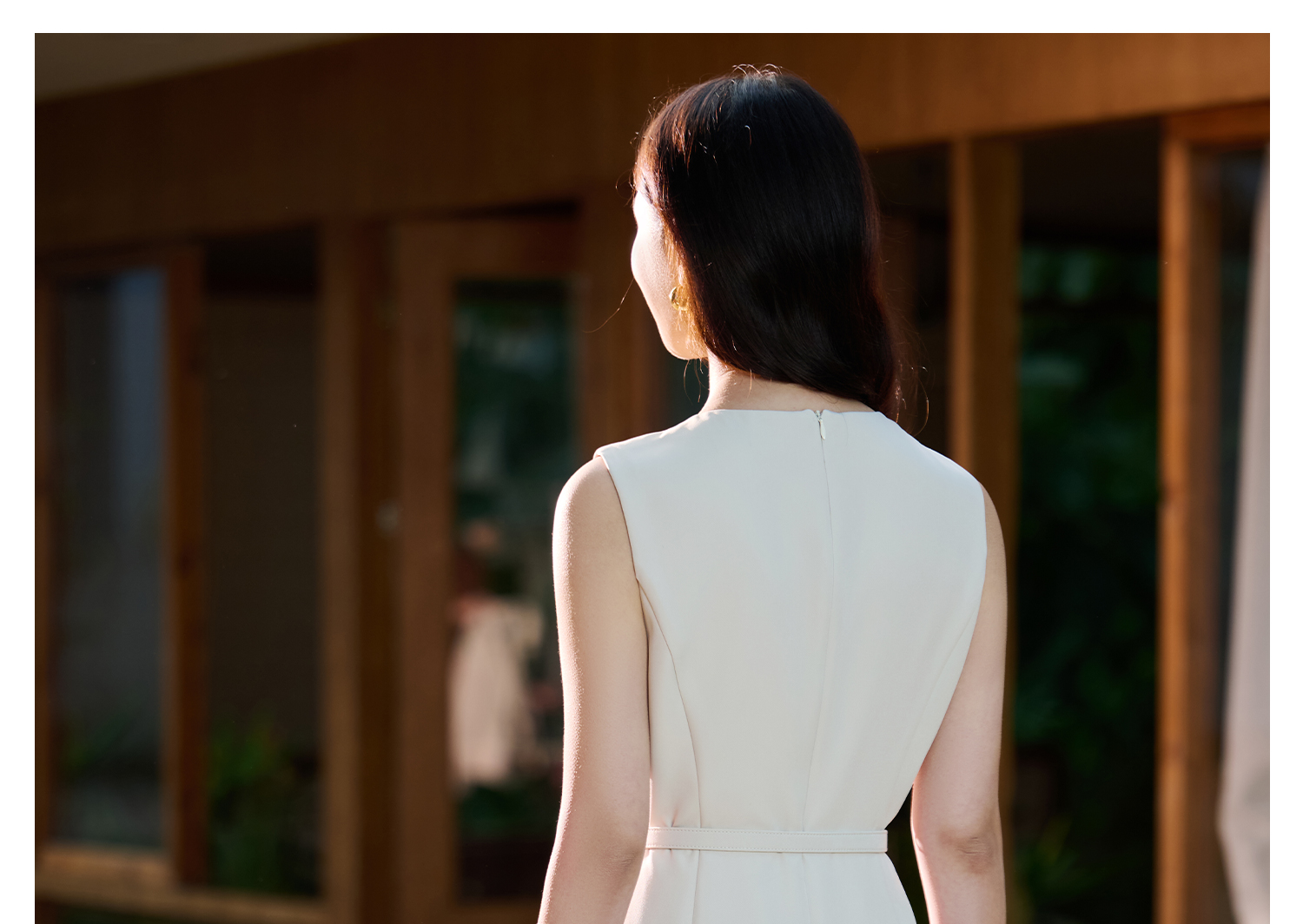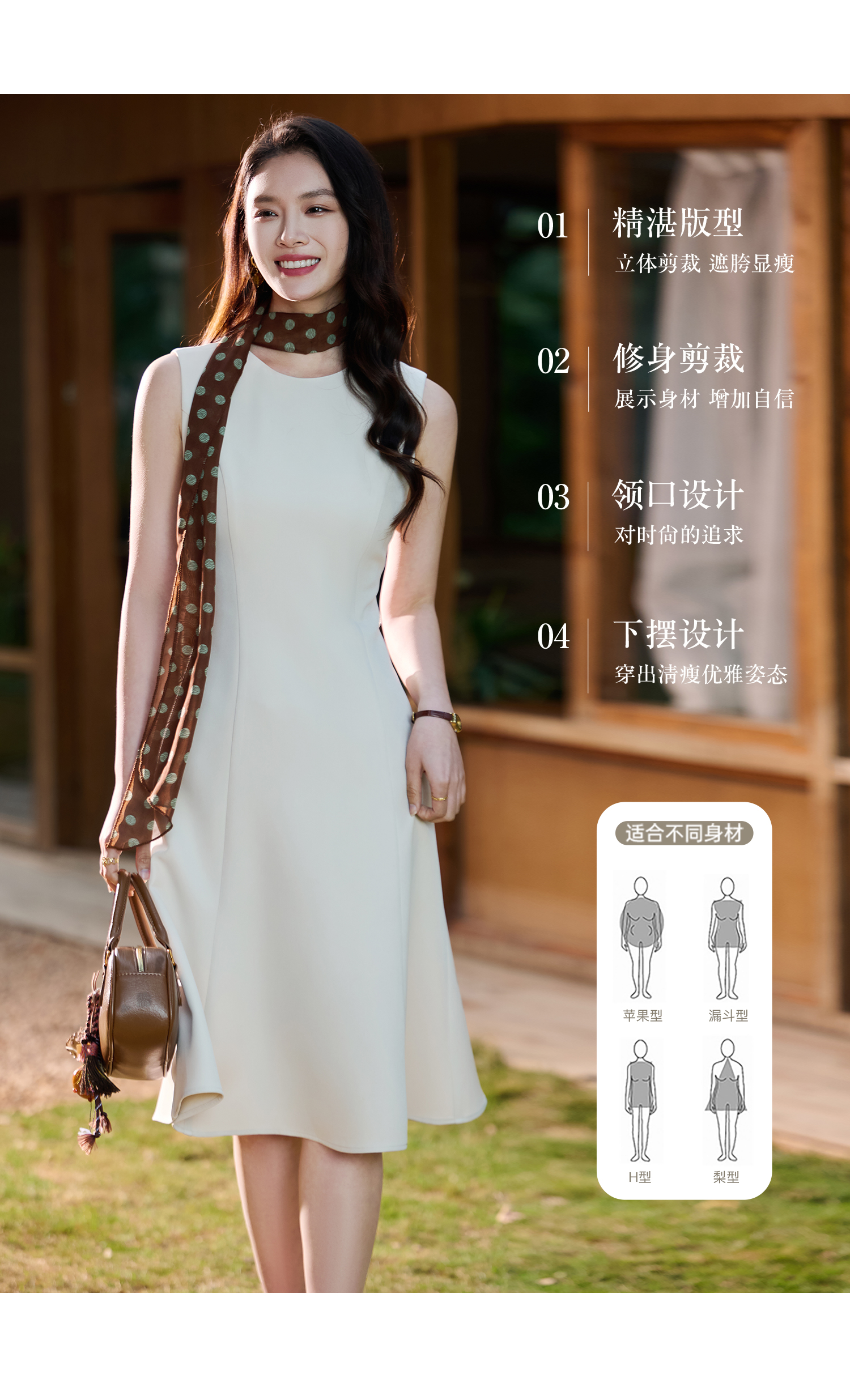 极简优雅的 “万能裙” 米色超百搭 自带高级感 米思阳2026春新款优雅通勤OL背心连衣裙无袖修身中长款裙子女5980
