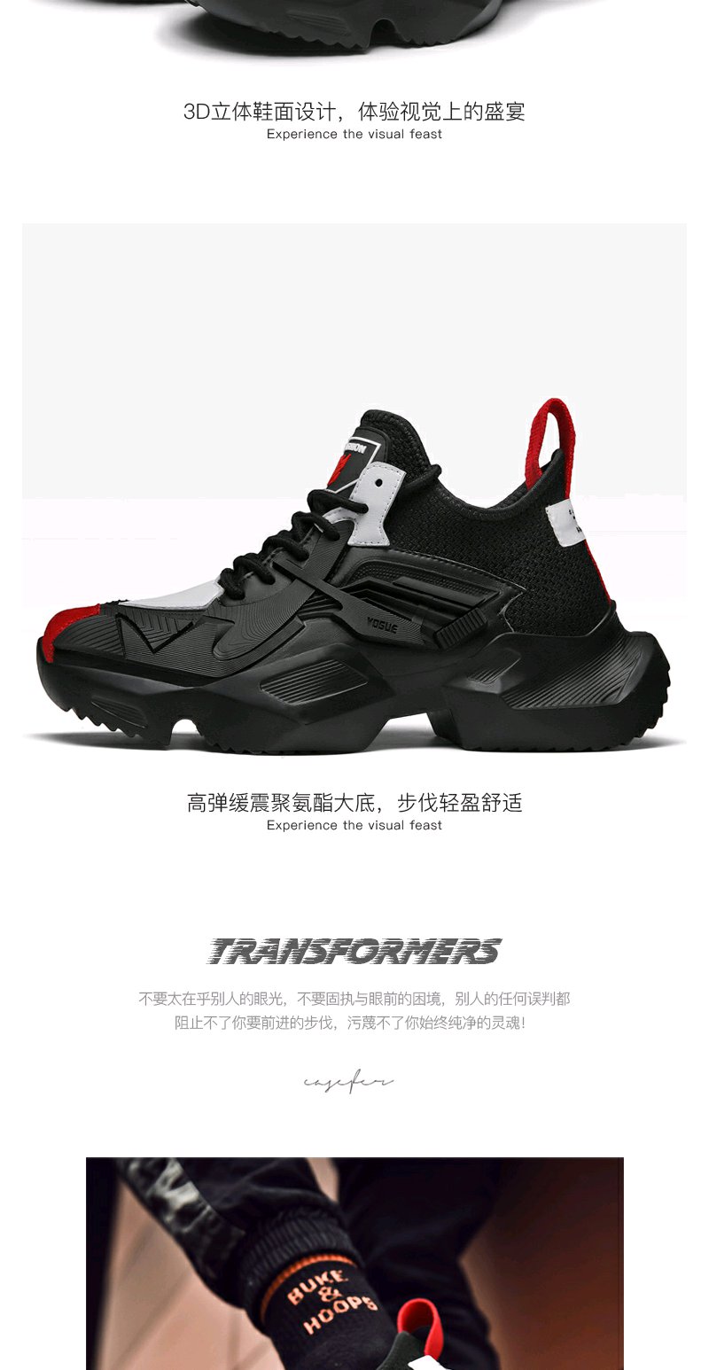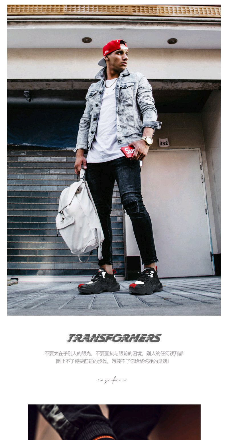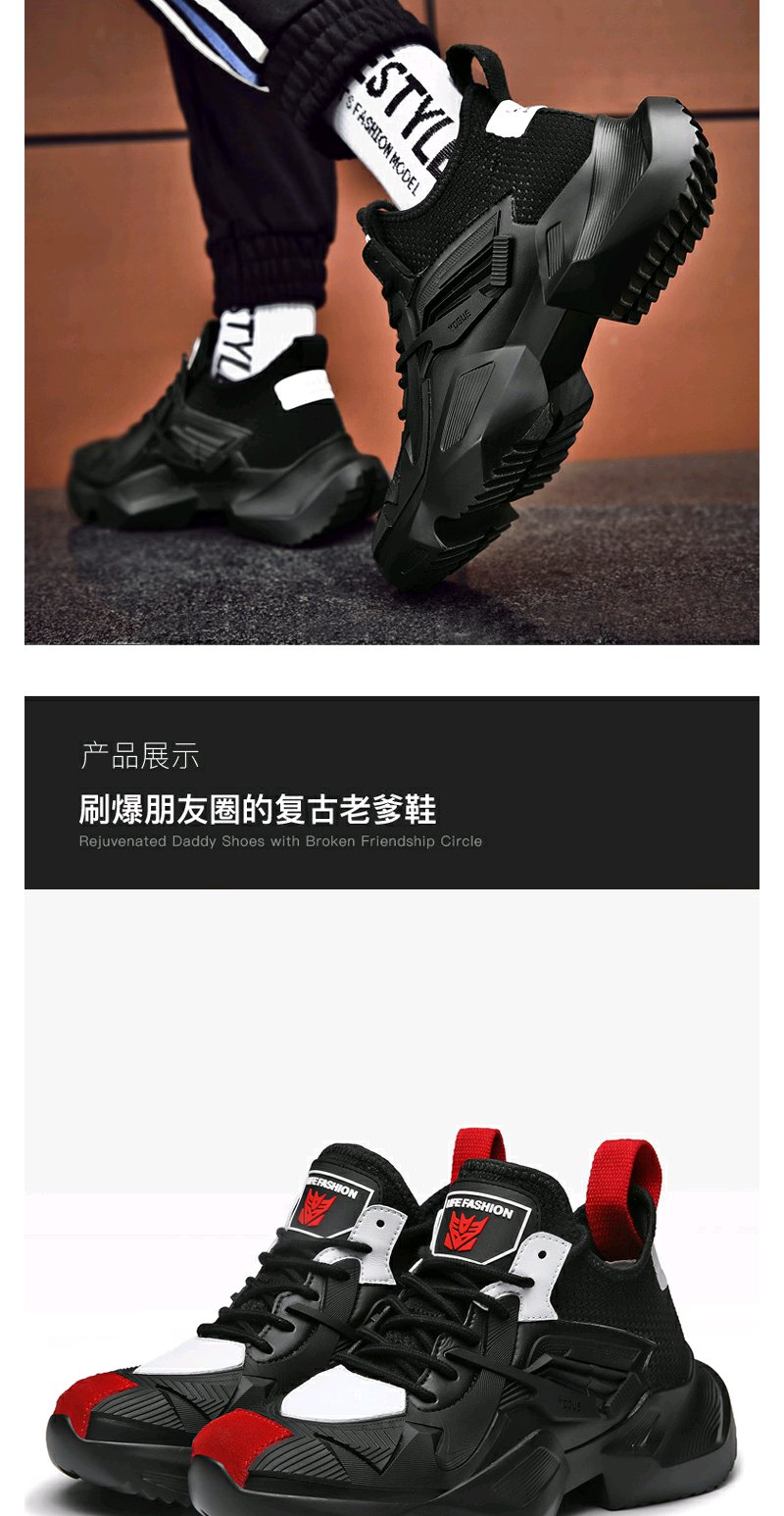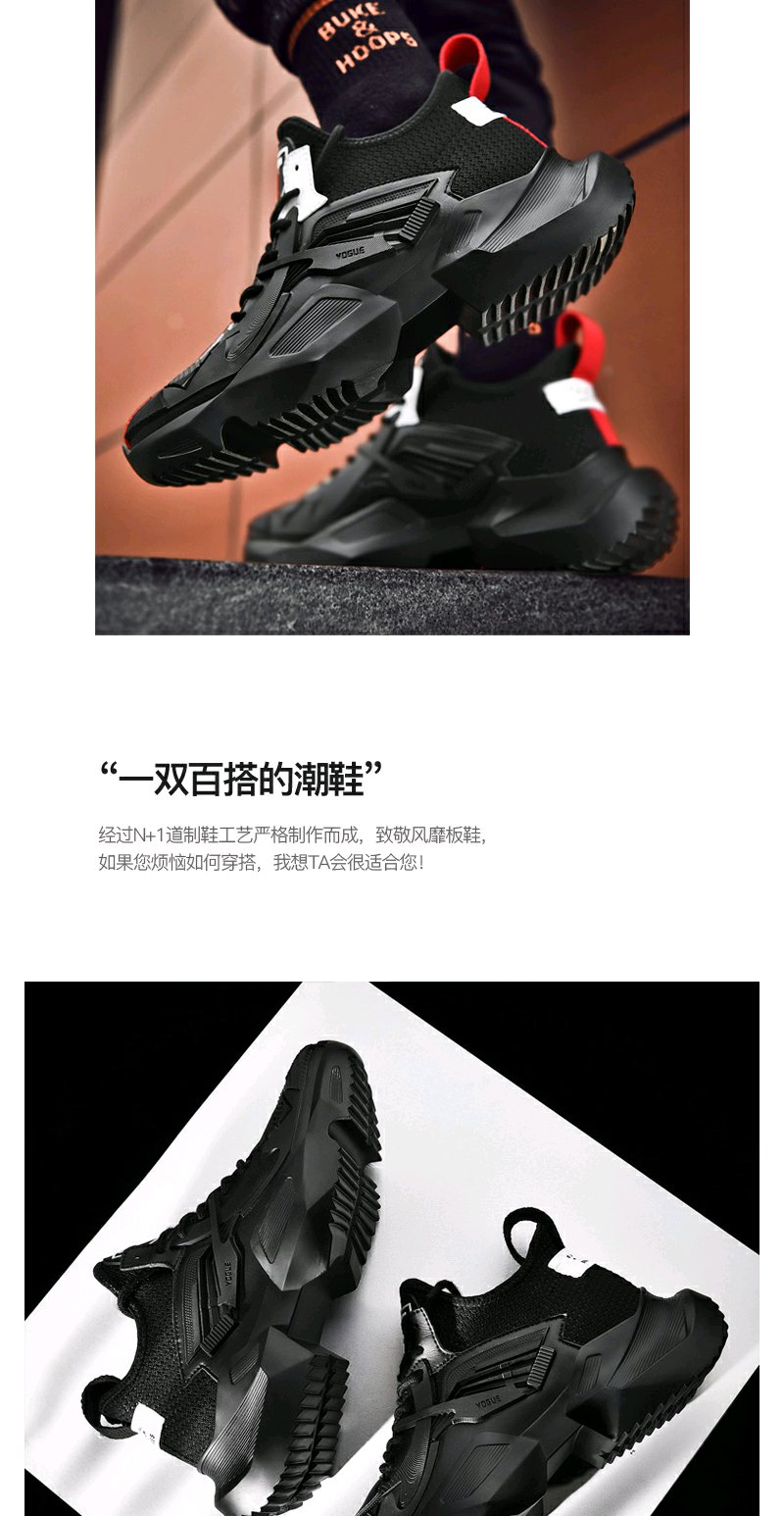 【男鞋潮鞋】 夏季黑色鞋子运动鞋学生百搭休闲厚底增高老爹鞋