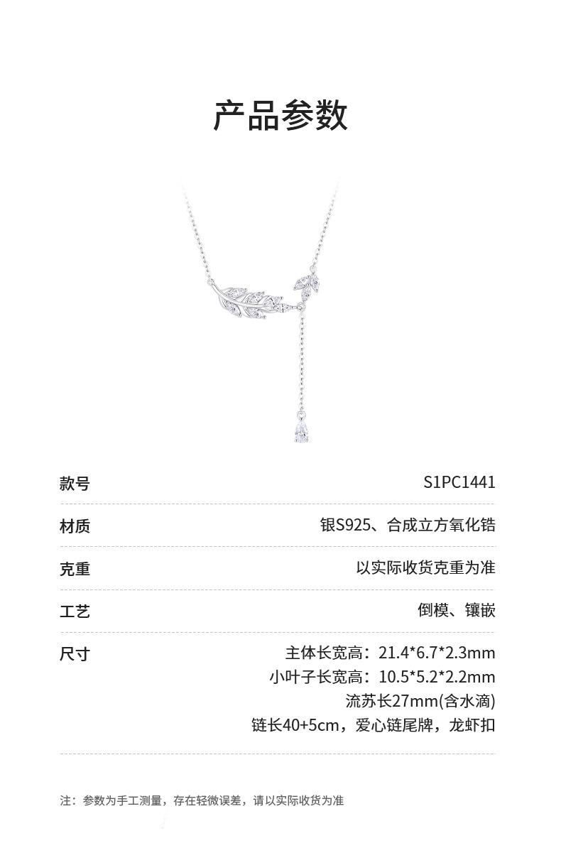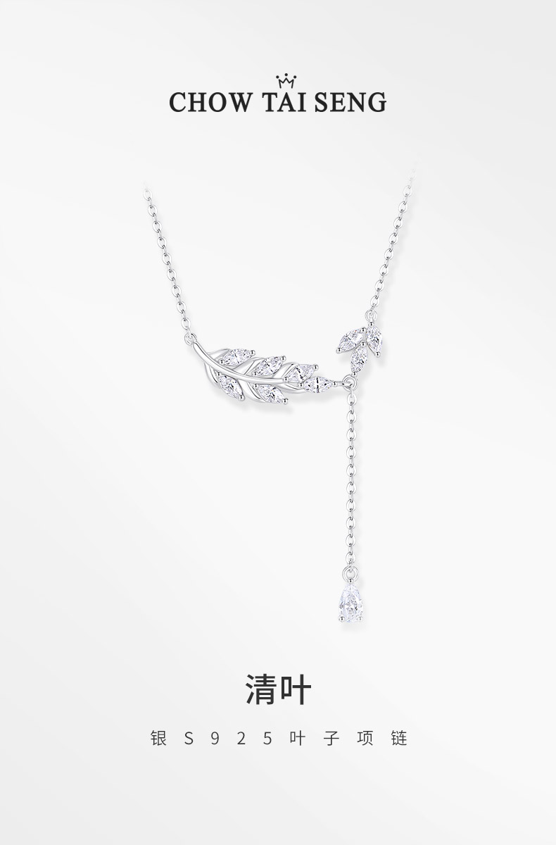 【特价秒杀】周大生银S925清叶项链时尚百搭叶片造型项链精致送妈妈母亲节送女友礼物