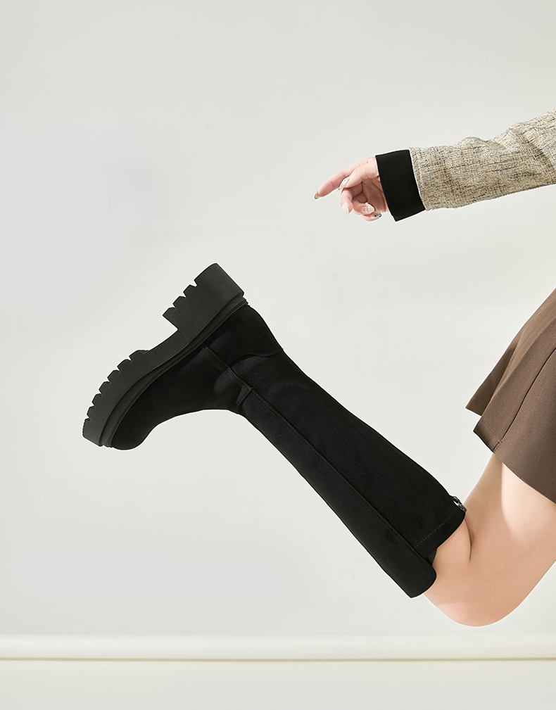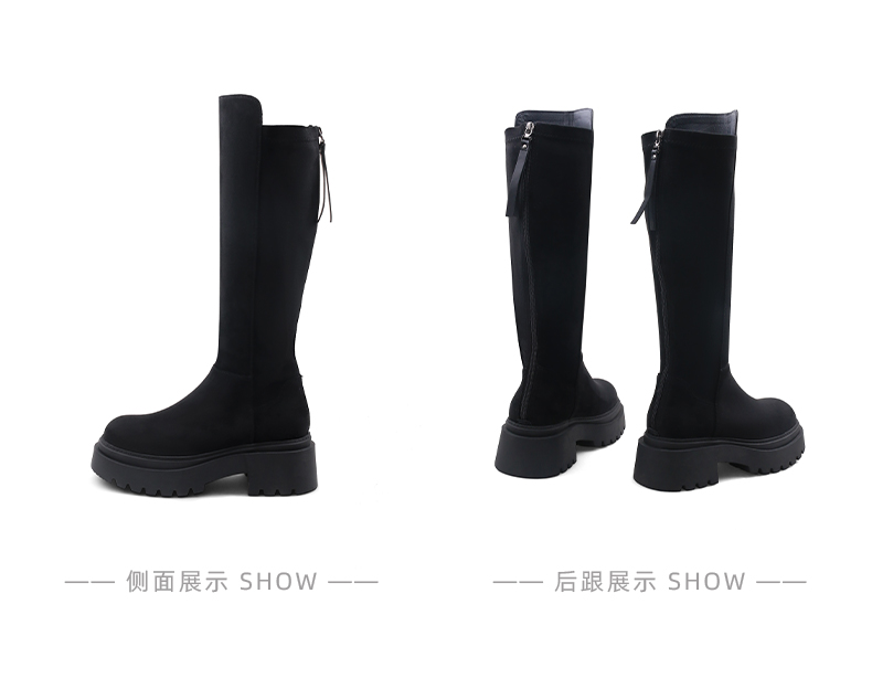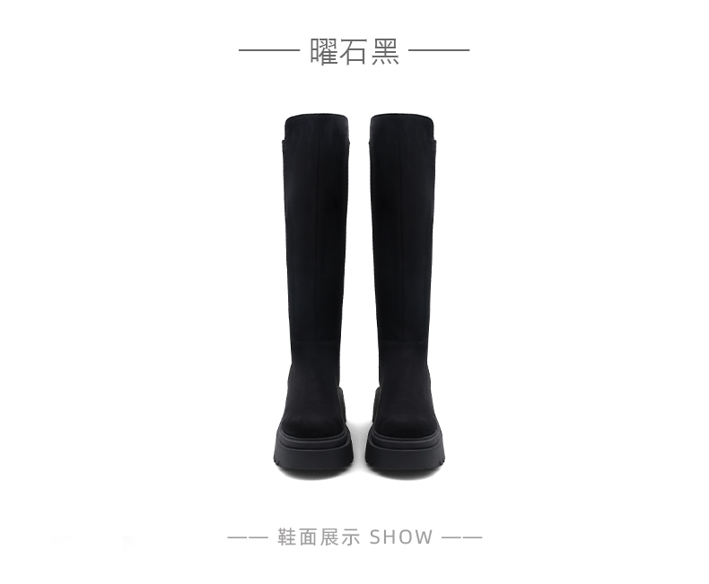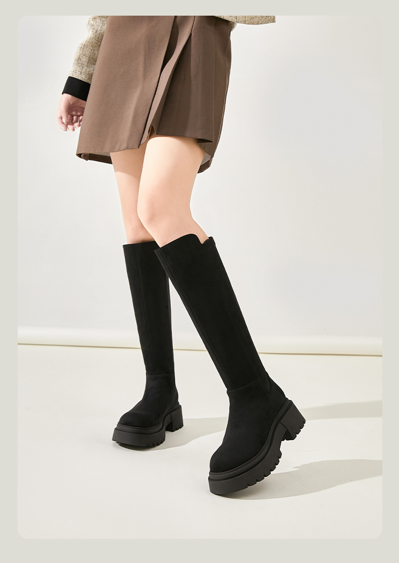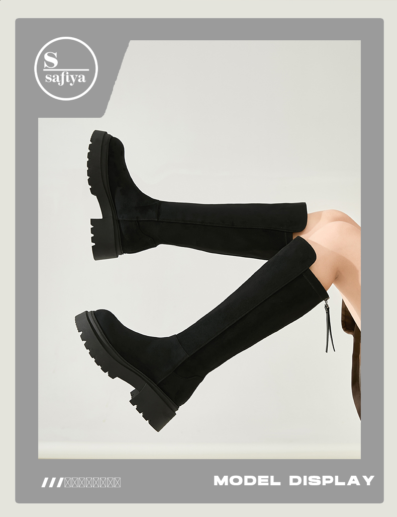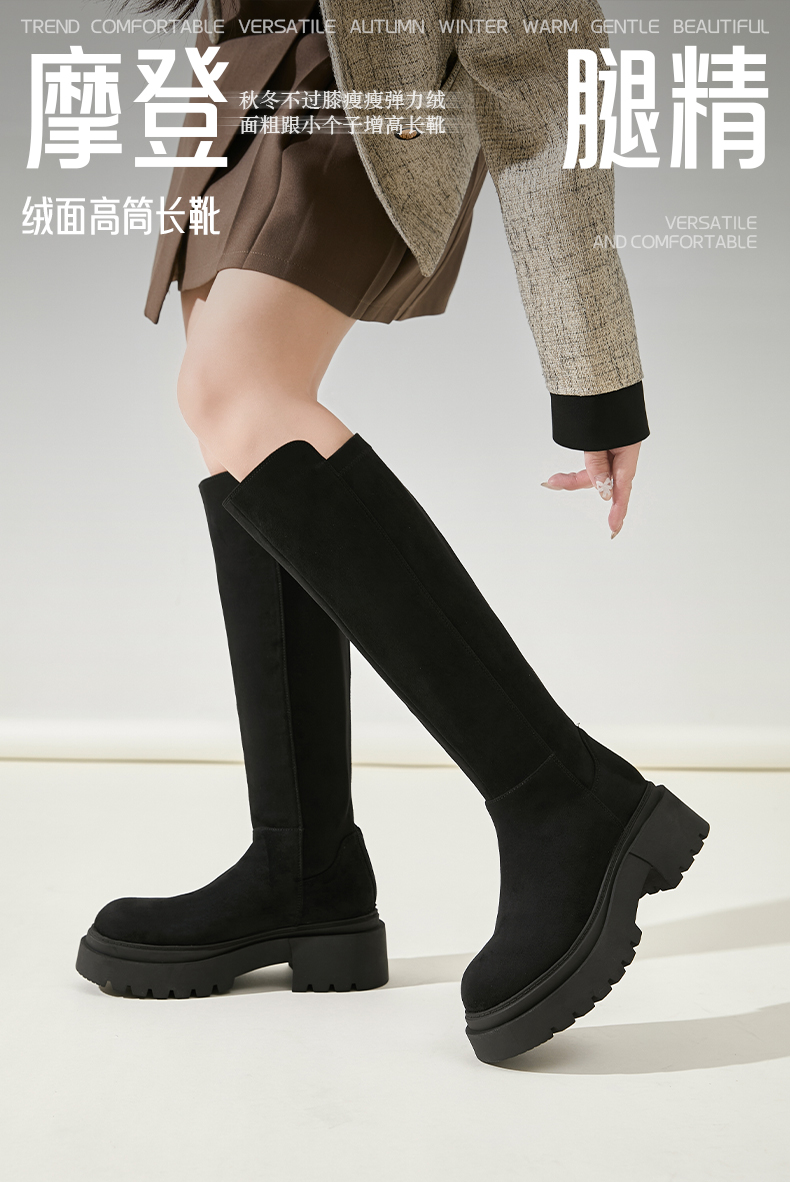 Safiya/索菲娅2024秋冬不过膝瘦瘦弹力绒面粗跟小个子增高长靴 SF44117249