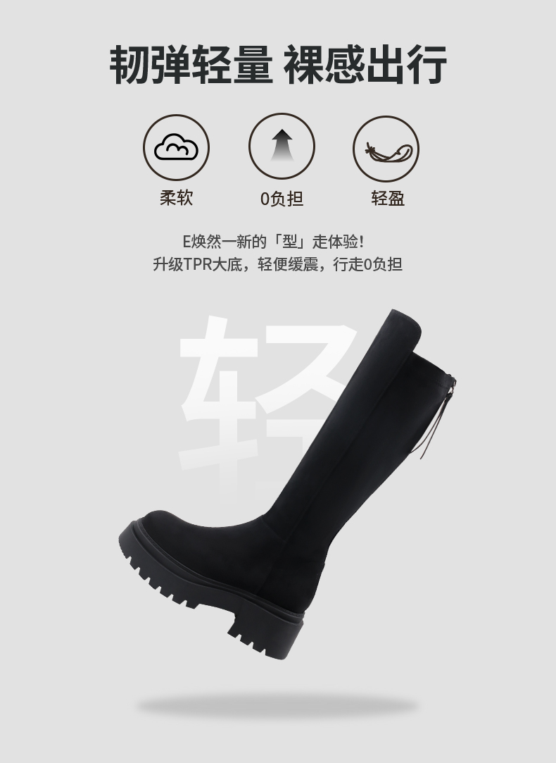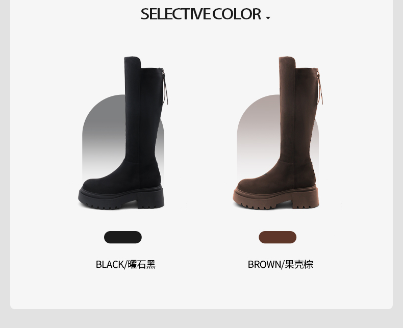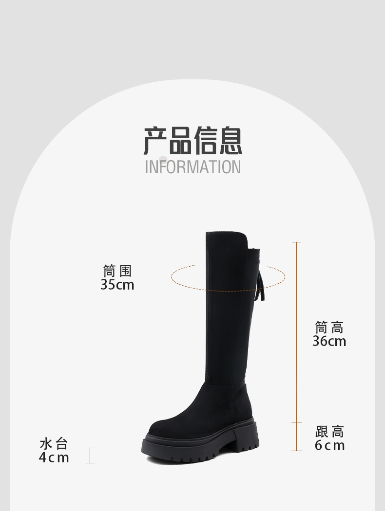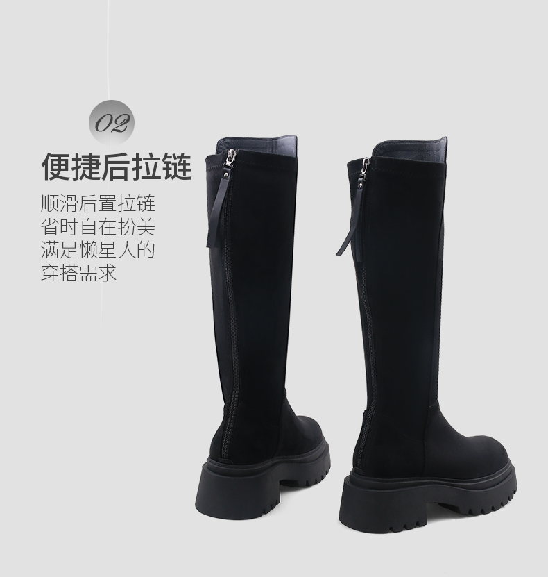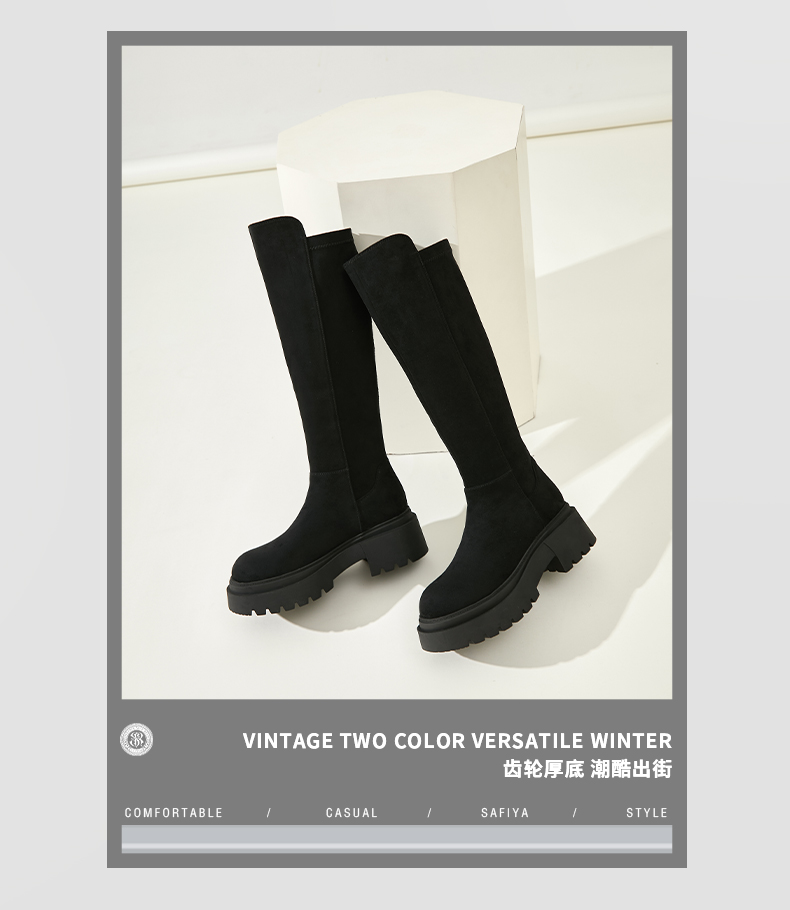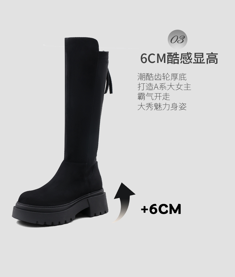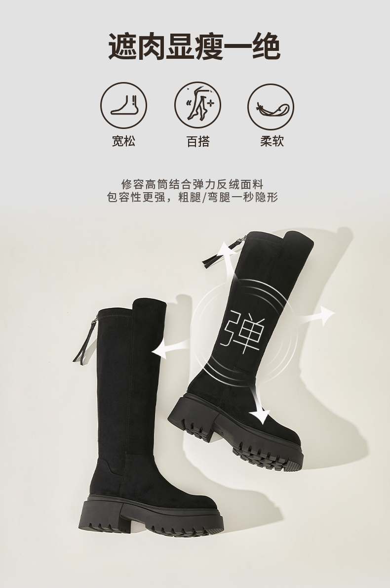 Safiya/索菲娅2024秋冬不过膝瘦瘦弹力绒面粗跟小个子增高长靴 SF44117249
