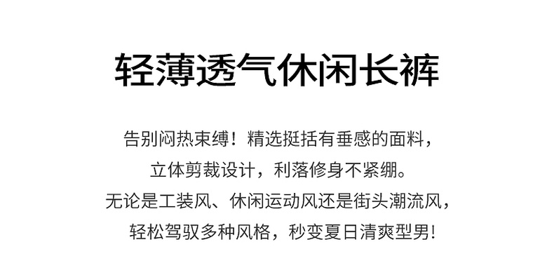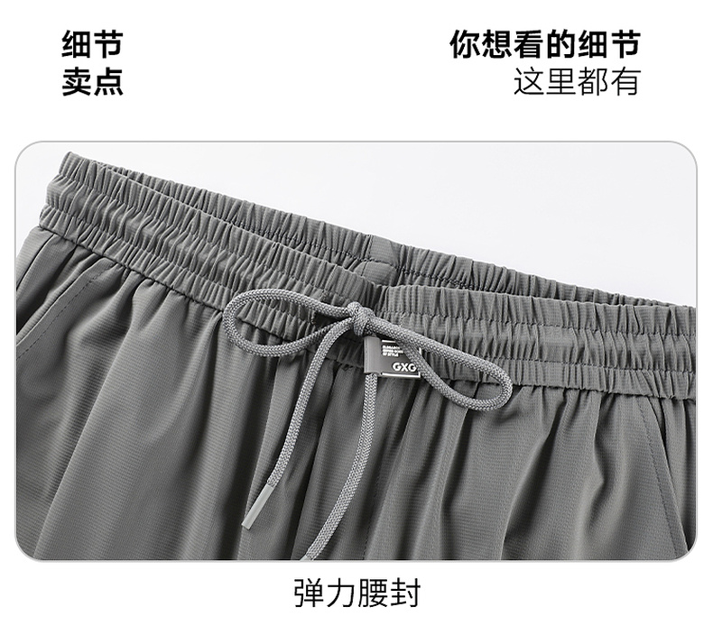 GXG男装25夏季时尚松紧腰系绳轻薄透气运动休闲男式直筒长裤K&C