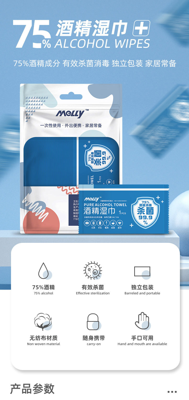 「9.9包邮!到手整袋50片」75%酒精湿巾便携一次性消毒湿巾 居家日用独立包装单片湿巾纸清洁工具