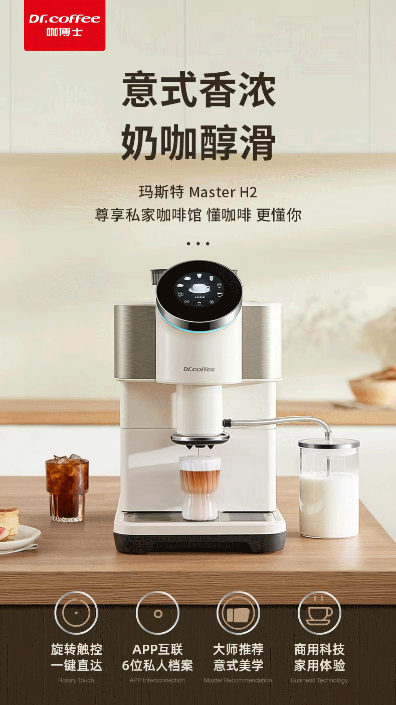 咖博士咖啡机家用小型意式全自动一键美式拿铁H2