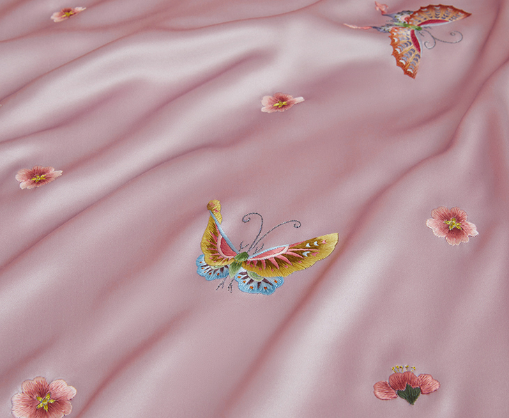 被子内里采用双层纱布包裹绗缝的工艺,将蚕丝均匀固定,增加了被子的美观和耐用性。