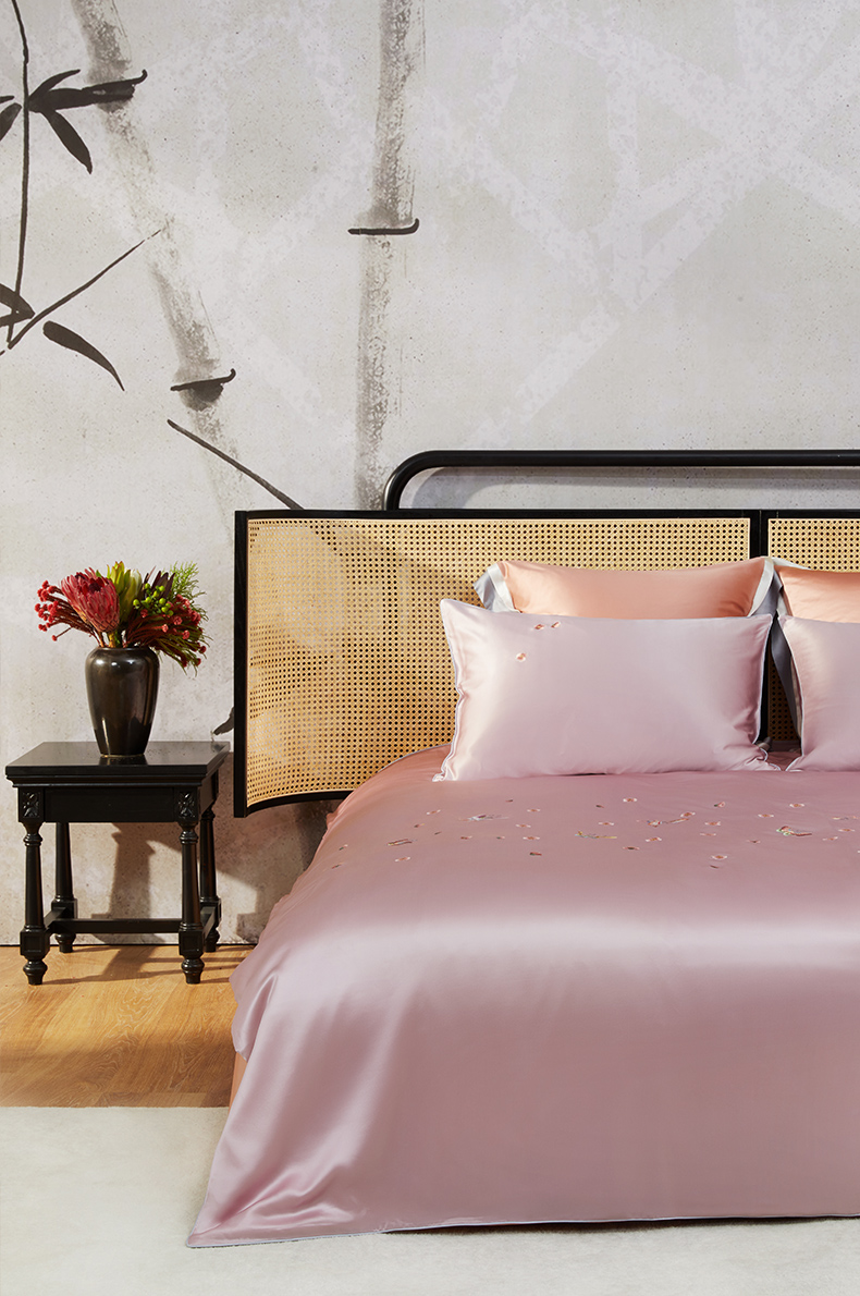 被子、枕头四周采用粗细不同的滚边工艺,既能增加细节美感,又能彰显产品的精良工艺。