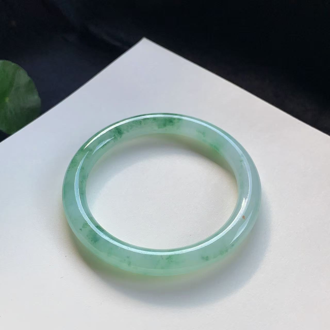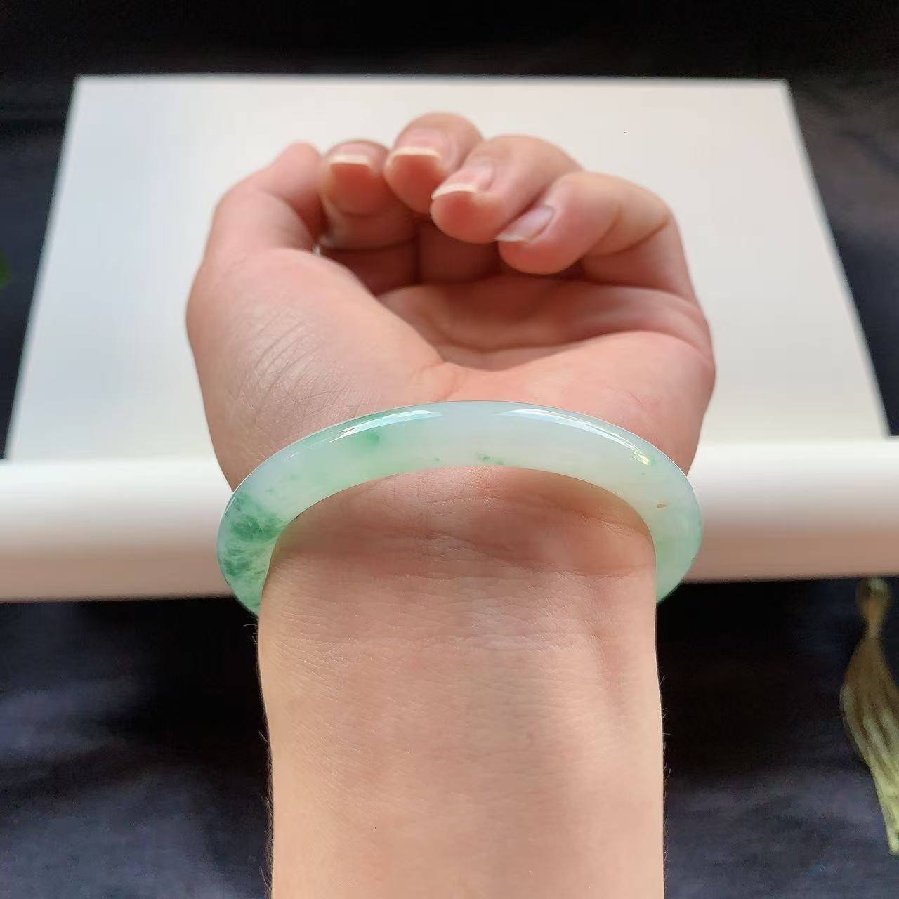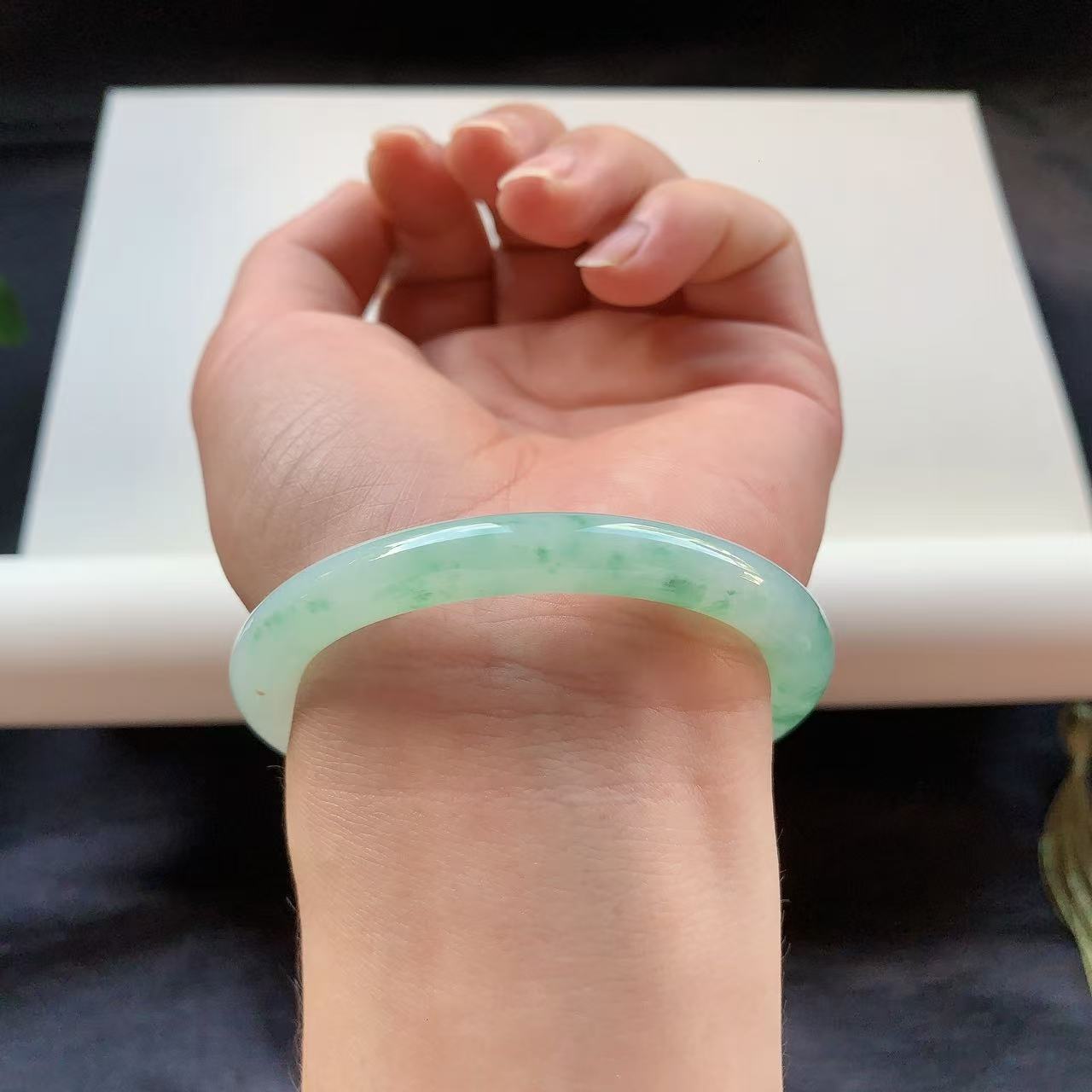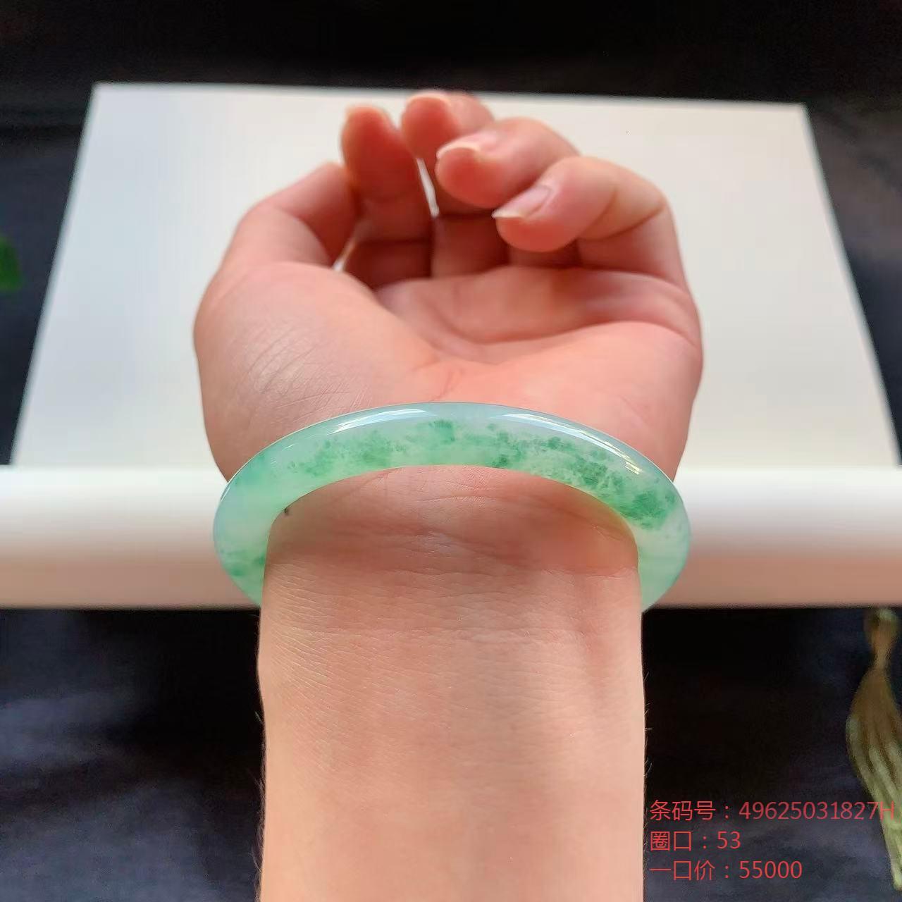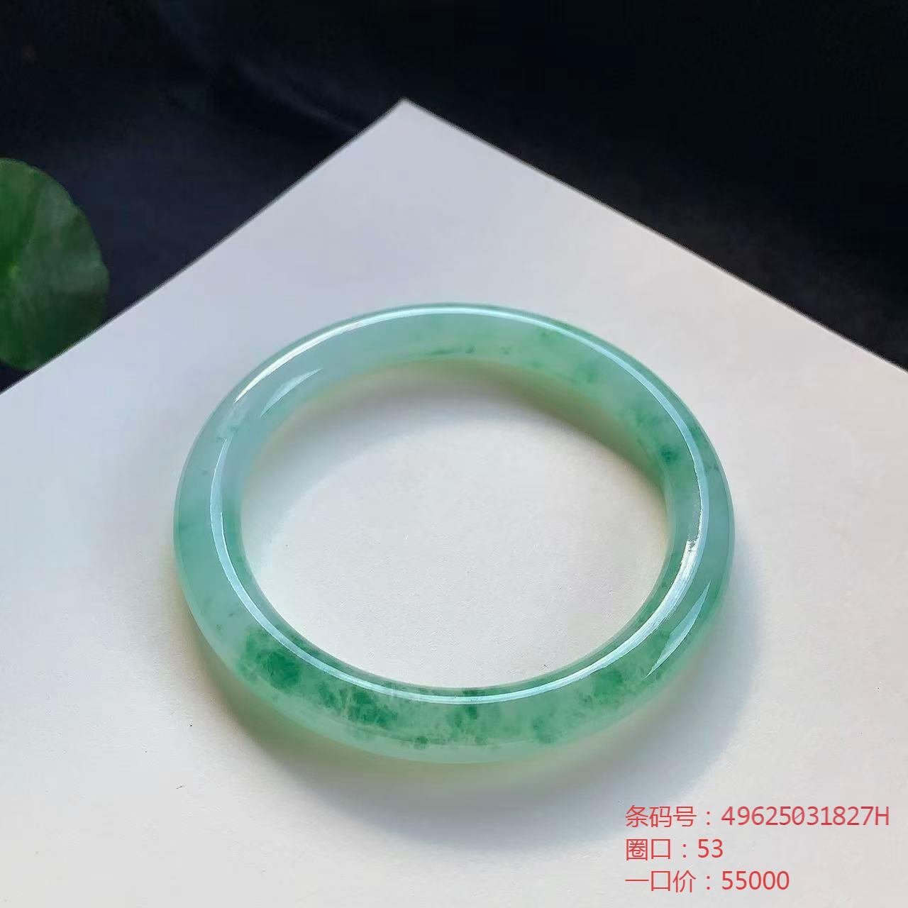 高货飘花翡翠手镯 传家宝温润圆满中式翡翠手镯49625031827H(一口价)