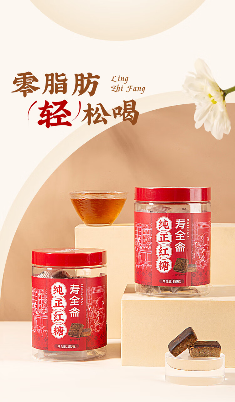 【分仓直发包邮】寿全斋纯正红糖块180g/罐