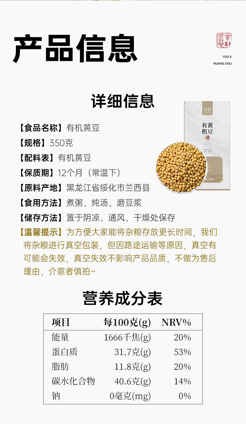 有机黄豆非转基因东北有机种植当季大豆打豆浆专用五谷杂粮粗粮350g