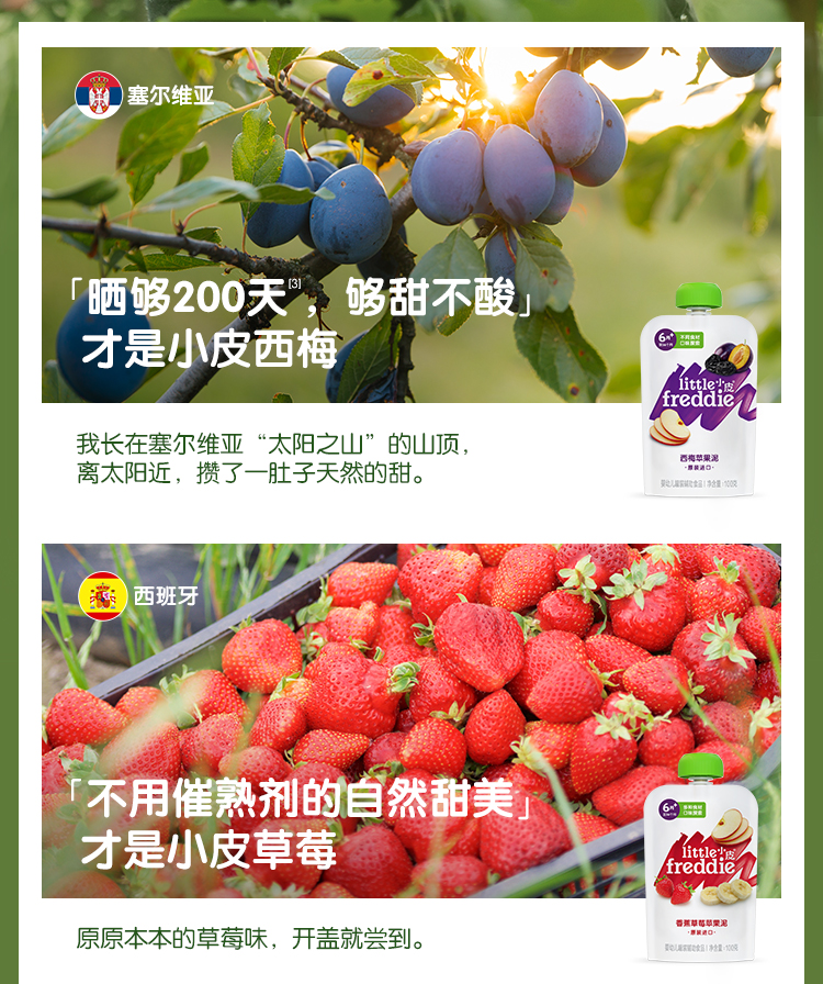 英国Little Freddie 小皮果泥 宝宝进口蔬菜水果泥辅食零食 酸奶发酵乳口味1岁+