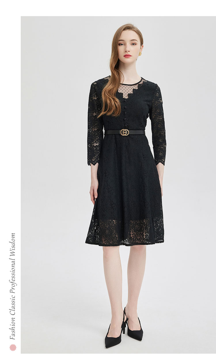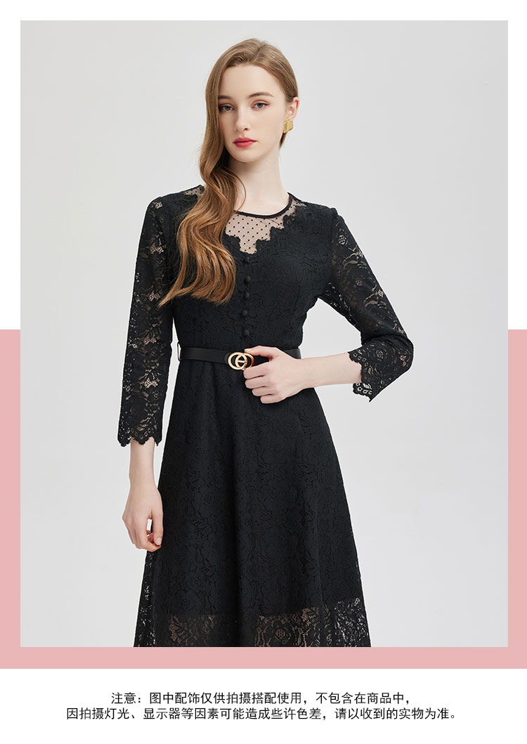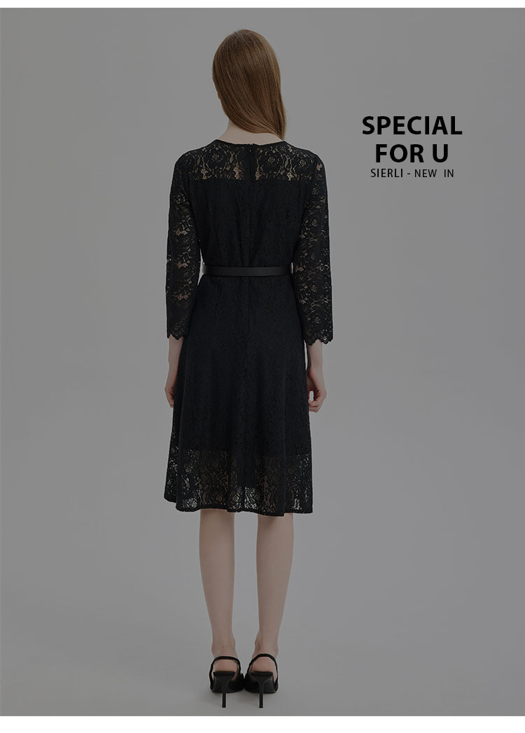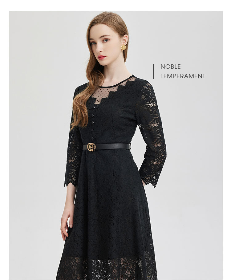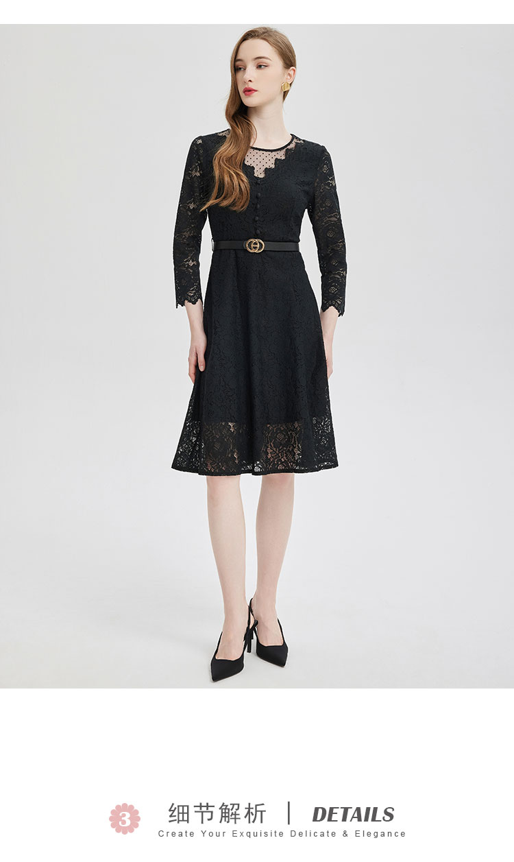 PE802斯尔丽2024新款法式浪漫蕾丝通透领口收腰连衣裙